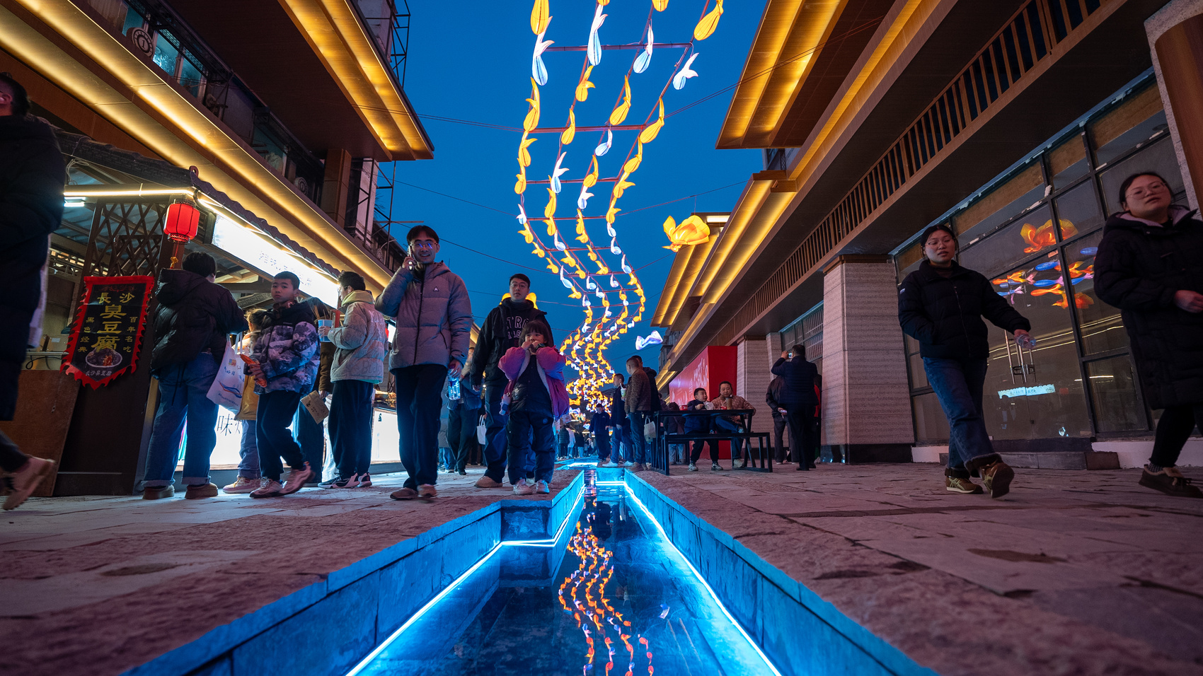 作为消费季的重头戏,芙蓉汉城历经近一年改造,重塑4.6万平方米街区。粉墙青瓦间植入曲水流觞、汉风灯饰,古老建筑与现代商业共融,“吃住行游购娱”全业态在此汇聚,一个独具蜀汉风韵的文旅消费新地标正加速成型。春节期间,游园会、集市、元宵喜乐会接连上演,鼓舞、杂技、汉服快闪每日登场,市民可赶集、猜灯谜、手作元宵,在古风汉韵中寻回地道年味。