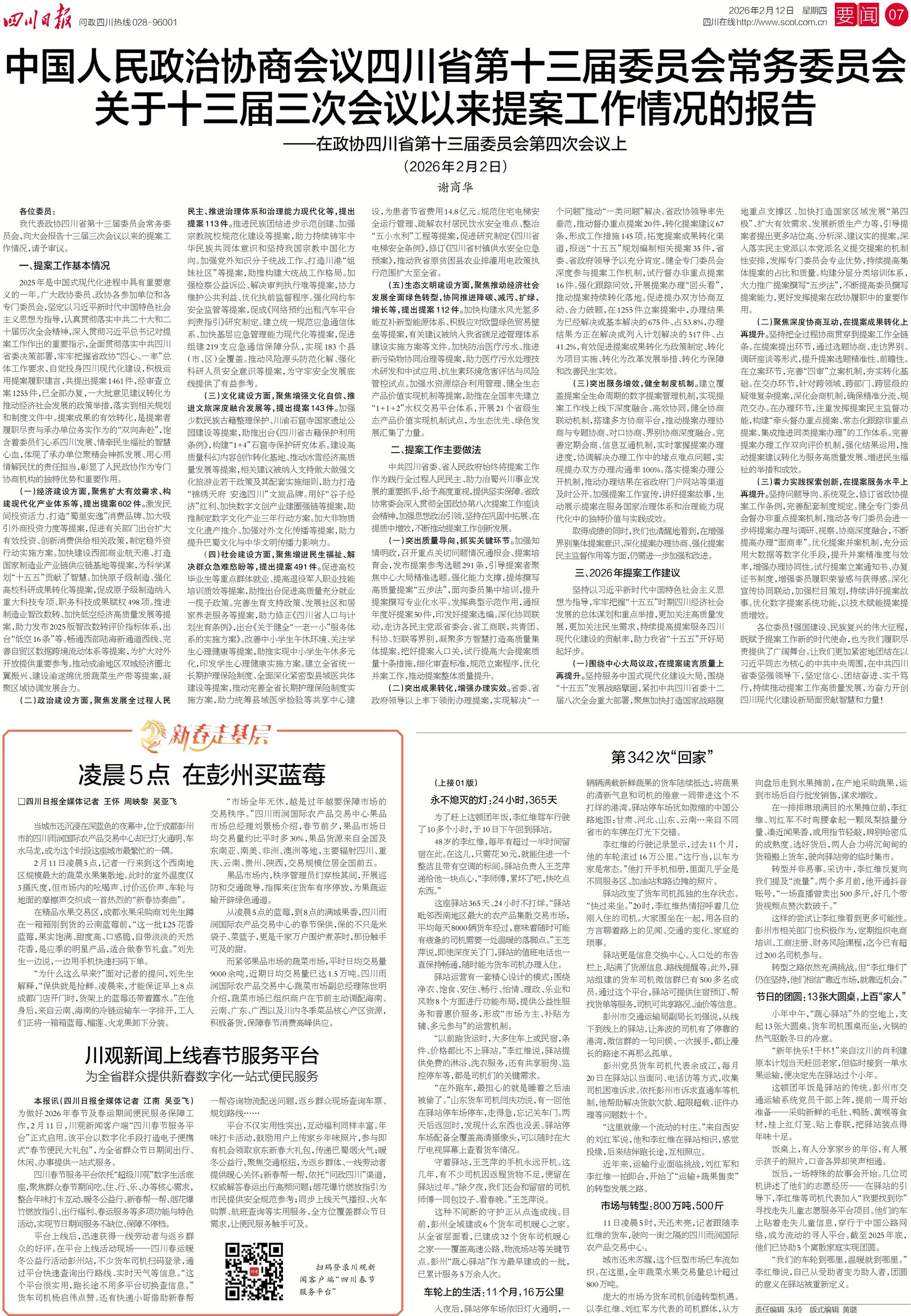 为保障春节消费高峰供应,在西南地区规模最大的蔬菜水果集散地,刚凌晨5点,吆喝声、讨价还价声已交织成热烈的“新春协奏曲”。春节前夕,果品市场日均交易量约比平时多30%,主要辐射四川、重庆、云南、贵州等地,交易规模位居全国前五。今日七版“新春走基层”,一起逛节前蔬果市场。