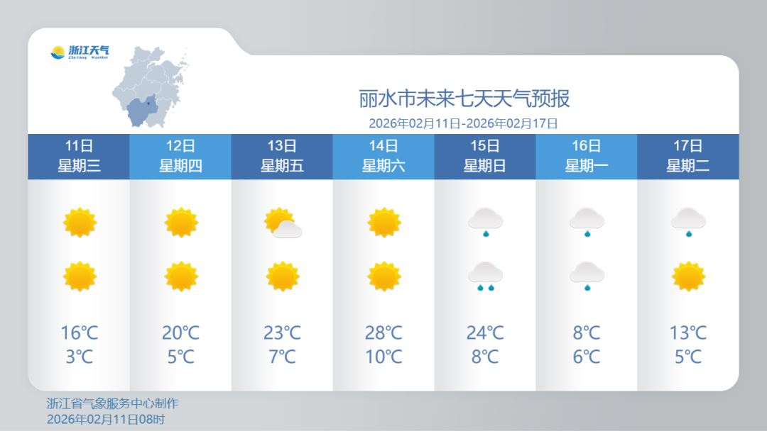 2月16-17日:浙南地区阴部分有小雨,其它地区多云。