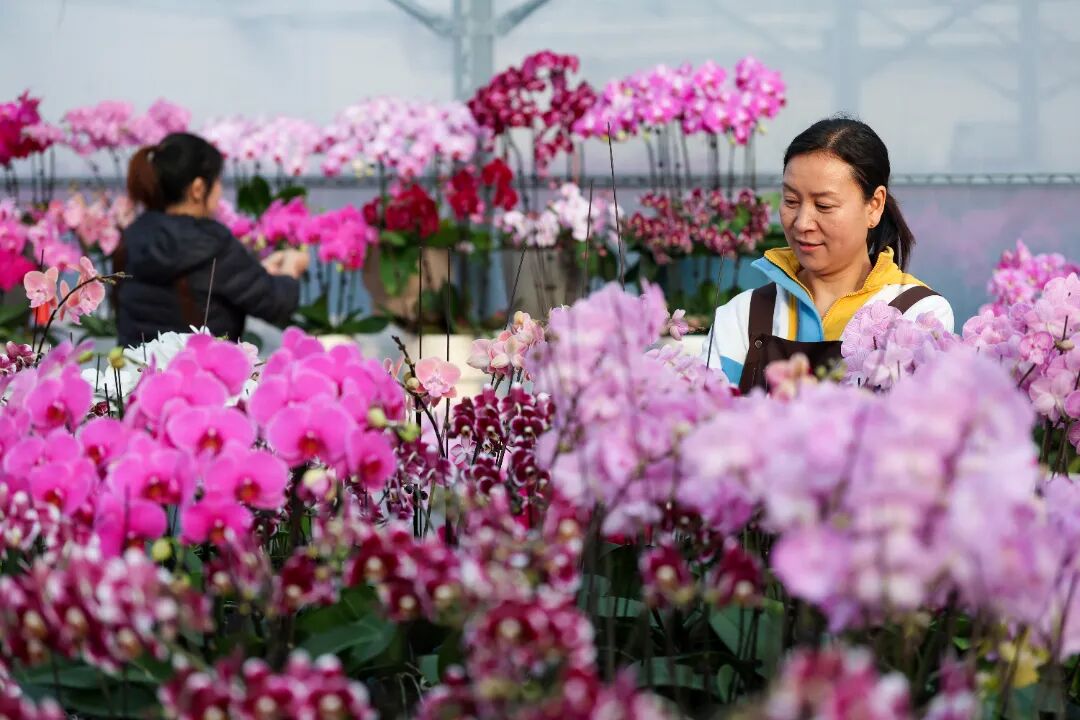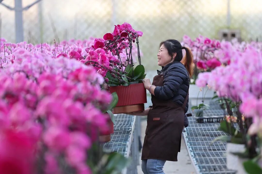 与此同时,遍布城乡的花卉种植基地里,花农们忙着换盆、组盆、打包,将精心培育的蝴蝶兰、仙客来、多肉植物等运往各地市场,抢抓年宵花销售的“黄金期”,让这份“美丽经济”在新春时节愈发红火。