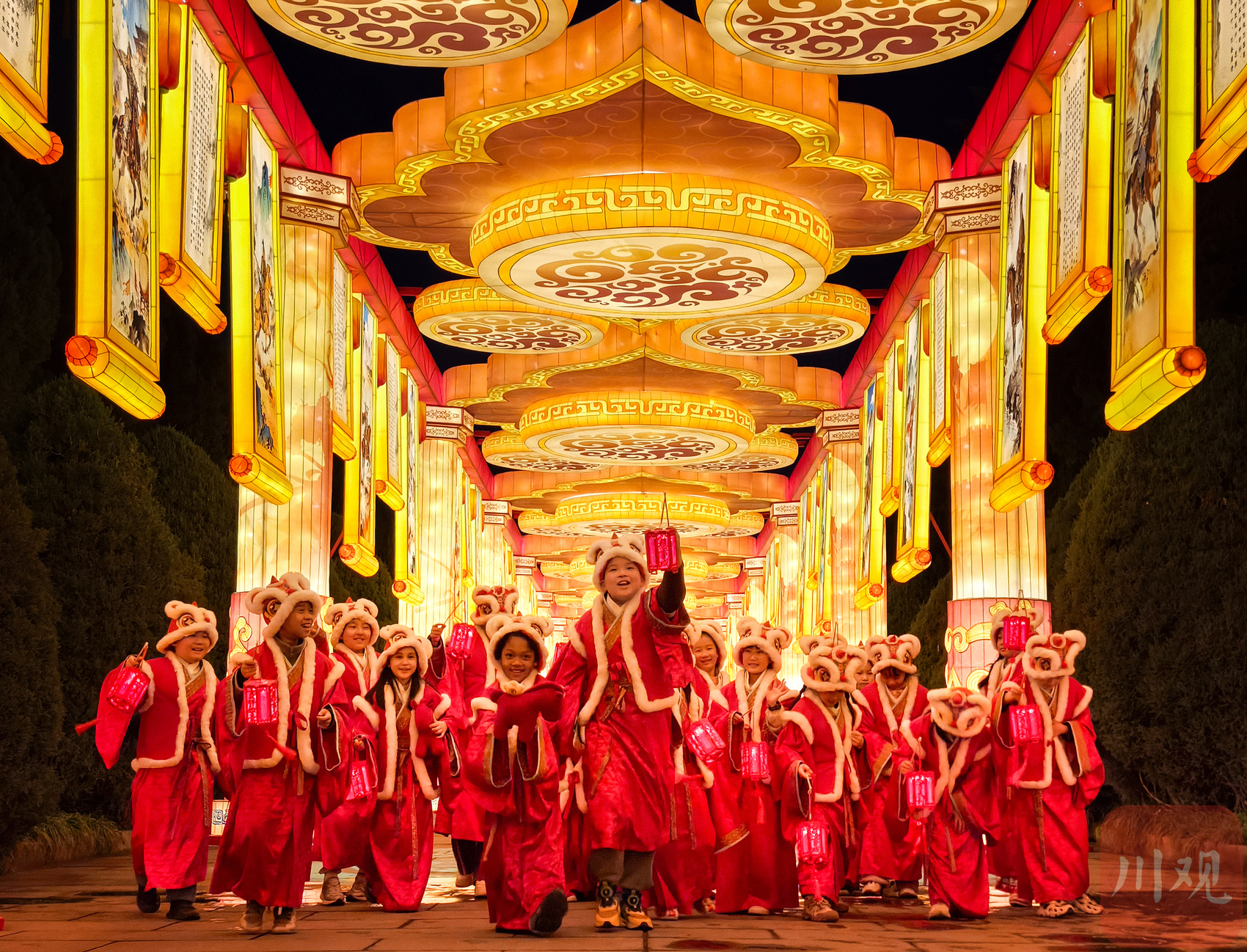 2月11日晚,2026武侯祠成都大庙会开启试灯,现场的小喜神们为活动增添了热闹喜庆的氛围。C视觉签约摄影师 沈军