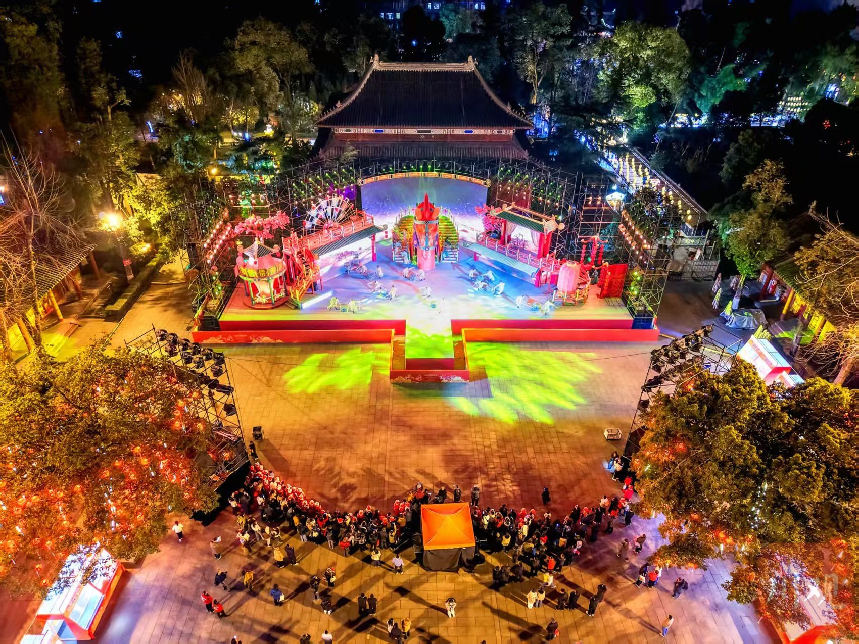 2月11日晚,2026武侯祠成都大庙会试灯活动现场,三国元素的歌舞表演带来一场视觉盛宴。C视觉签约摄影师 邓显杰
