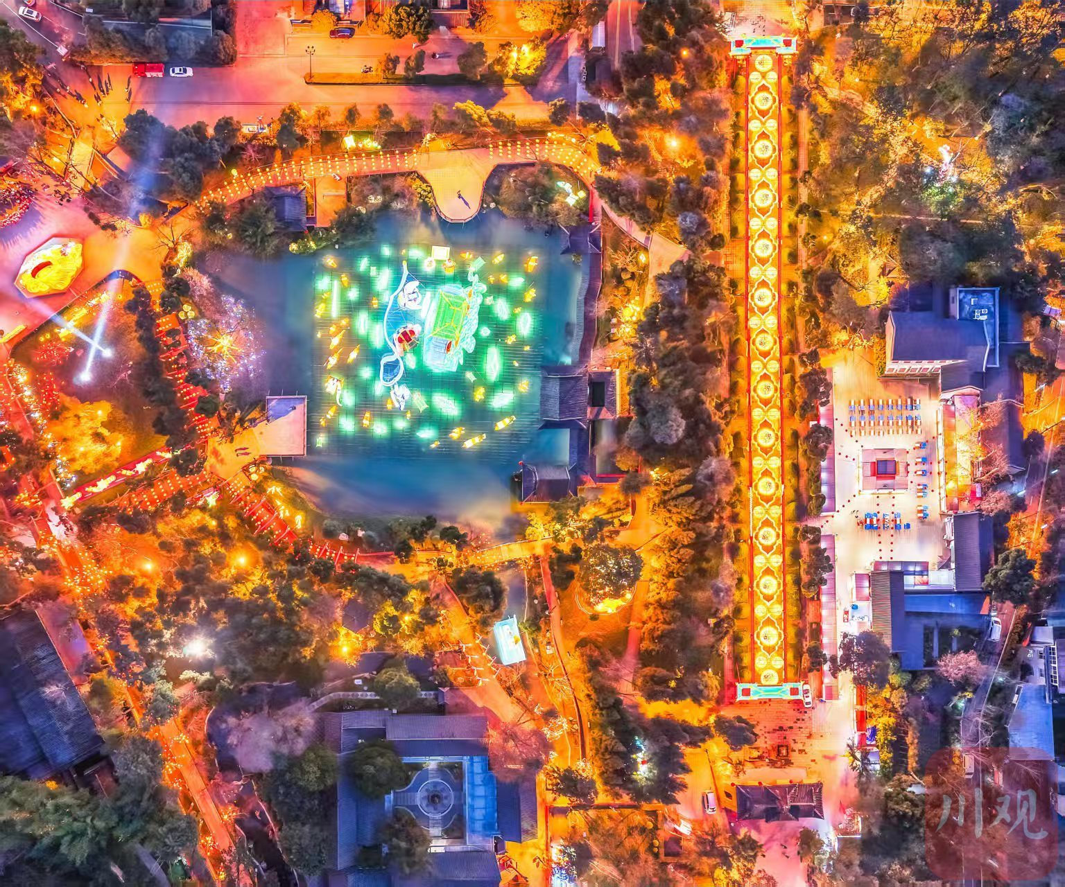 2月11日晚,空中鸟瞰2026武侯祠成都大庙会试灯活动现场,璀璨夺目。C视觉签约摄影师 邓显杰