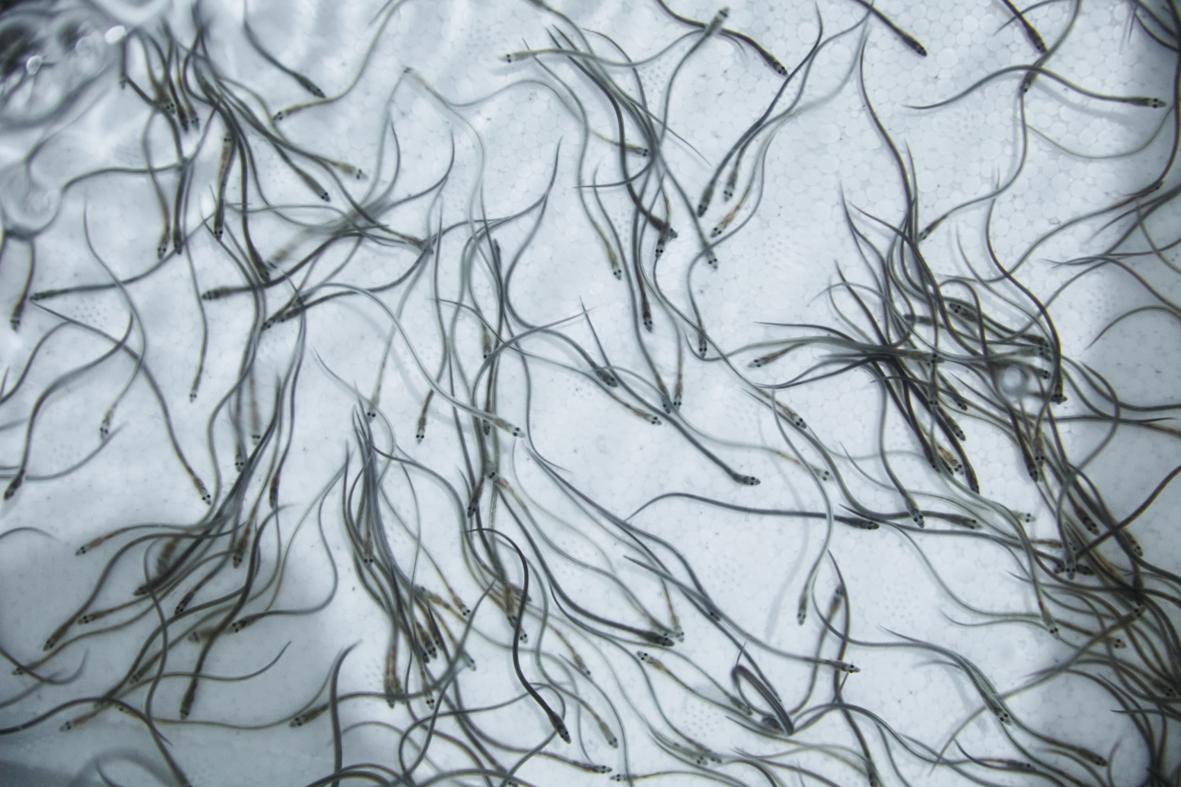细如发丝的鳗鱼苗。