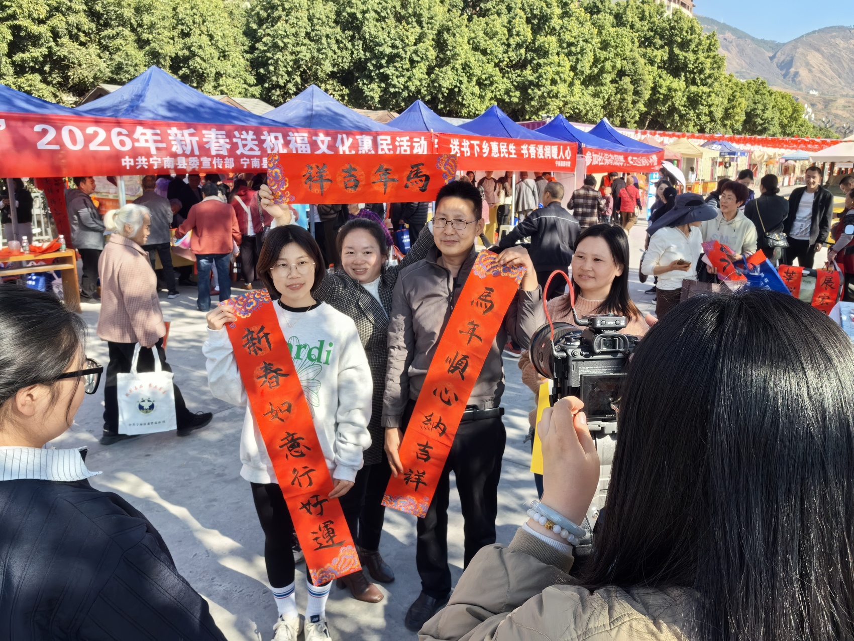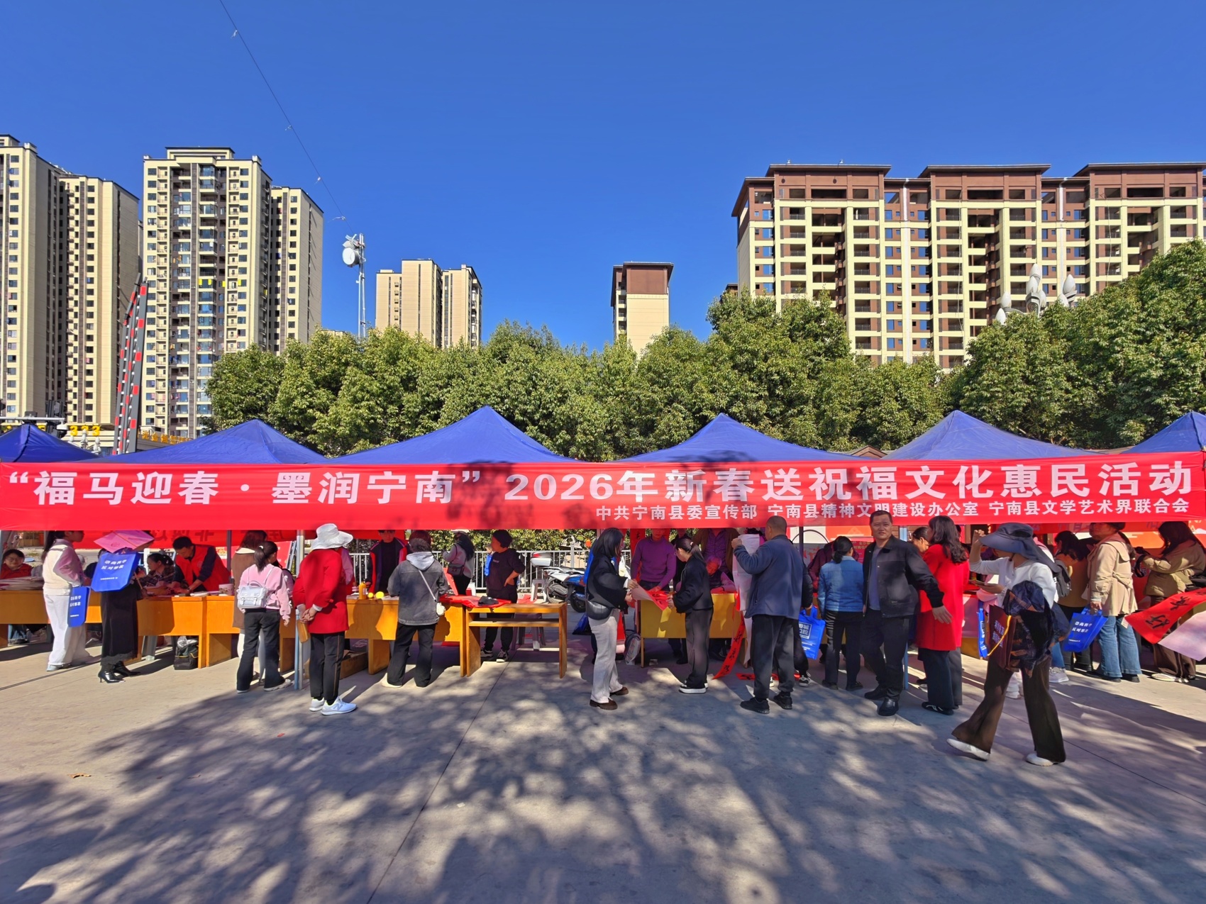 活动内容:组织宁南县书法家、艺术家在金沙福市集中送春联、送“福”字、送全家福、送日历、送非遗拓片、送图书,弘扬传统文化,传递新春祝福。