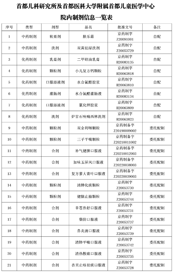 因此,敬请家长提高警惕,通过首都儿科研究所等医疗机构就医、购药,共同抵制侵权仿冒产品。清单如下: