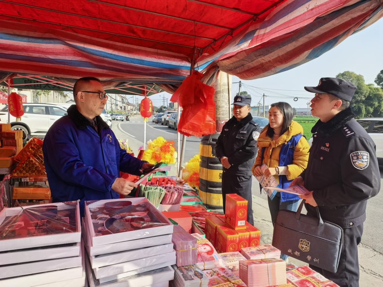 从余某家出来后,郭志强一行又在小区临街商铺走了一圈。路过一家售卖祭祀用品的店铺时,郭志强停下脚步,仔细检查了店内售卖的物品,并与店主交谈。“过年生意好,但安全这根弦不能松。”他一边提醒店主要依法依规售卖烟花爆竹,一边叮嘱要注意防火防盗,确保万无一失。