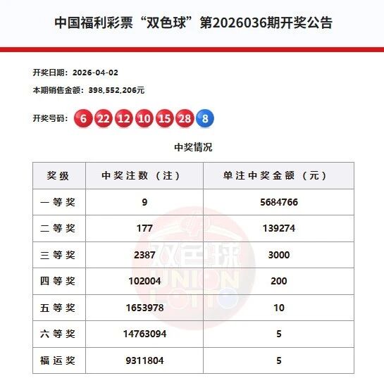 据悉,2月10日晚开奖的双色球第2026018期,全国共中出单注奖金557.7万元的一等奖6注,分别出自:内蒙古、上海、浙江、重庆、四川、云南(各1注)。