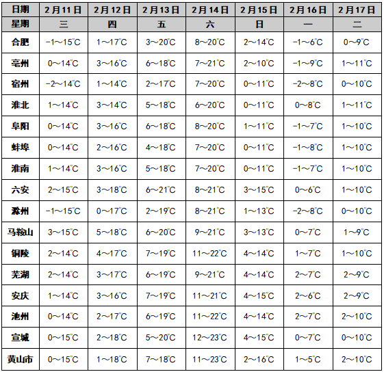 安徽省天气情况