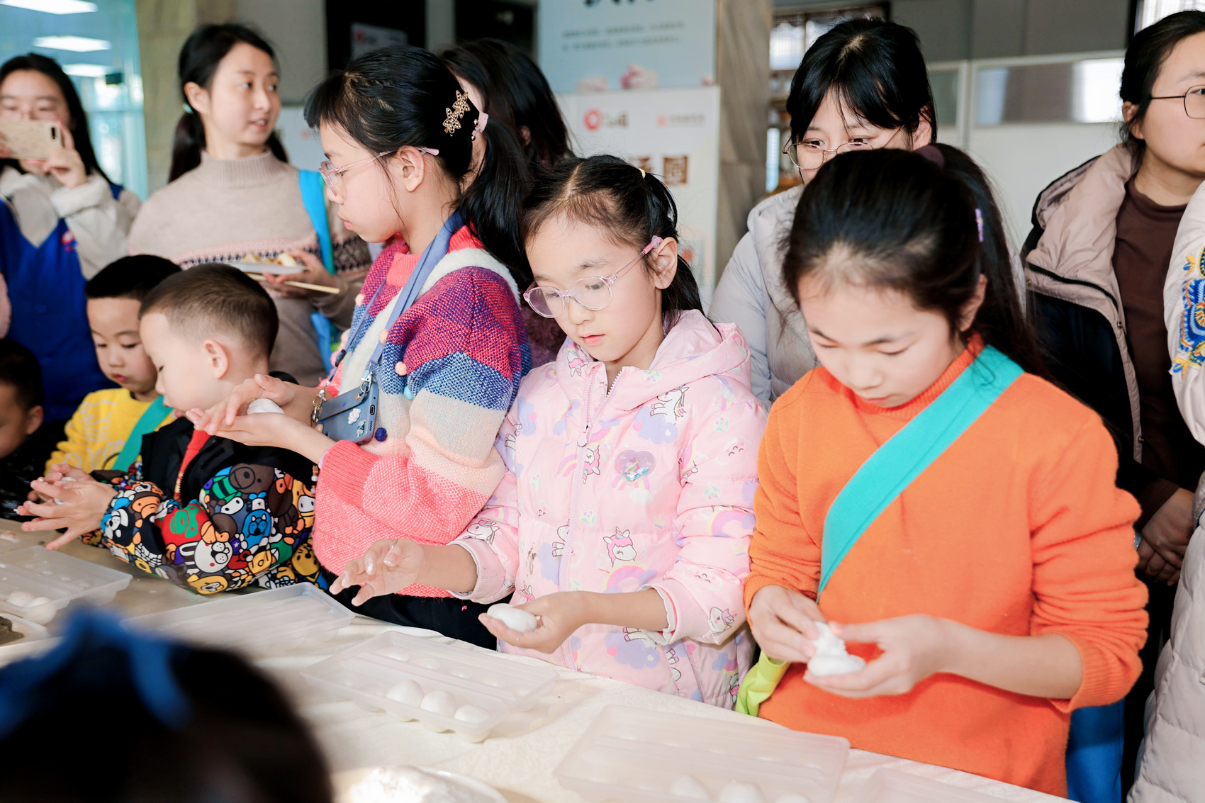 小小体验官们在师傅指导下,认真包汤圆