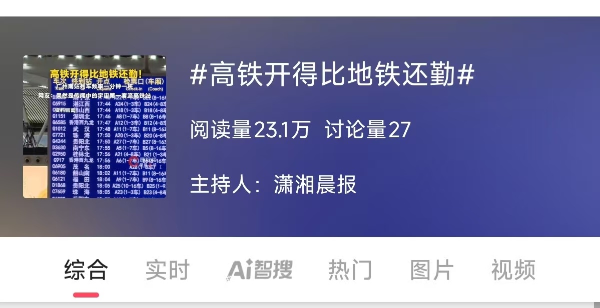 近日,“高铁开得比地铁还勤”的词条冲上热搜,引发全网热议。