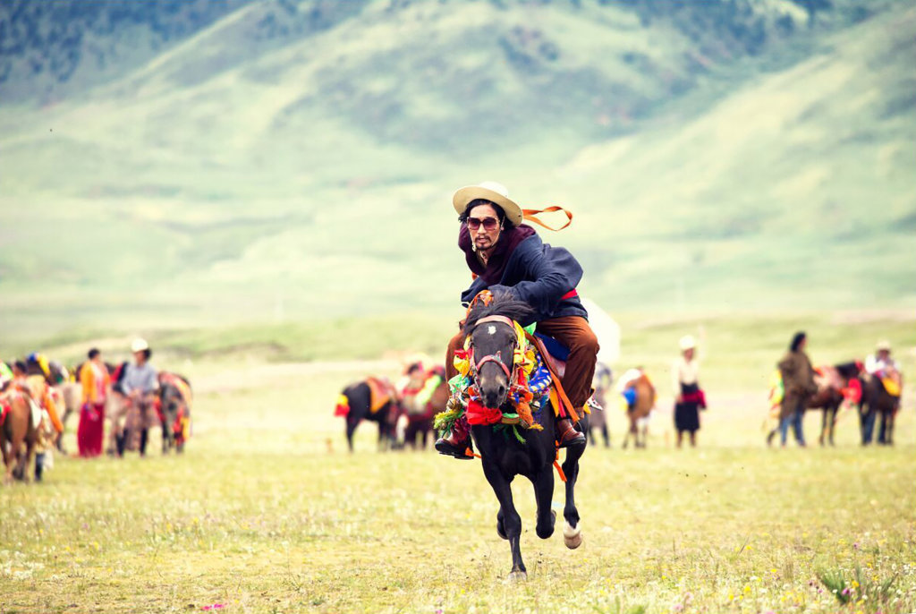 “对藏族人来说,马是有着酒一样效力的动物。”阿来提起与马的渊源,满是感慨,“我很多年没跨上马背,可一看见它们的身影出现在金色桦树掩映的路上,身上所有关于这种善驰动物的感觉便瞬间复活!那种强健生命特有的腥膻味,蹄声在寂静中震荡,脊背波浪般的起伏,和大地一起扑面而来的风,这就是马。”