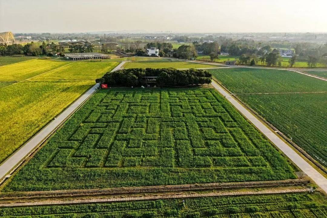 巨型油菜迷宫以精巧布局展露独特风貌,规模相当于23个标准篮球场。据介绍,这片油菜迷宫依托北斗卫星定位技术进行精准测绘与种植,采用紫叶黄花、绿叶黄花两种油菜间隔种植,色彩交错勾勒出独特图案,兼具观赏性与互动性。远远望去,油菜迷宫如大地铺展的绿色拼图,深浅交织的花田勾勒出蜿蜒脉络,仿佛《绿野仙踪》里写到的那处藏在田野间的秘境,静待游人开启这场春日探险。这处还在春日里茁壮成长的油菜迷宫,早已刷屏朋友圈,网友们称其为成都版“绿野仙踪”。