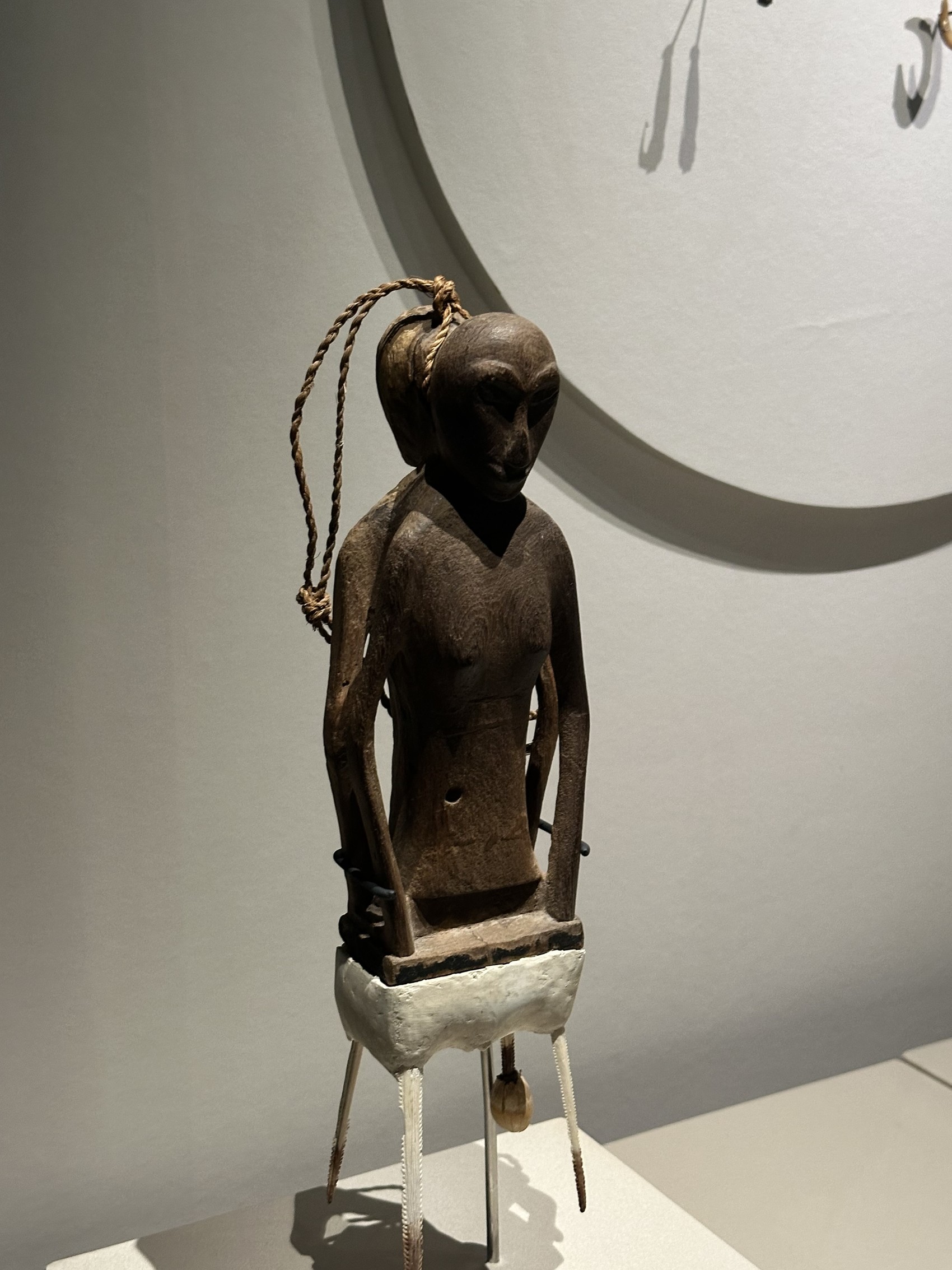 此次“碧海浮槎——法国国家凯布朗利博物馆藏大洋洲艺术珍品展”在三星堆博物馆的推出,是该展在中国境内巡展的首站,也是三星堆博物馆的首个艺术特展。展览以大洋洲人群为核心,从水域、空间、时间与人类自我表达四大维度构建叙事脉络,通过“驶向深蓝”“山海烟火”“天海之交”“礁屿凝光”四个层层递进的篇章解码文明脉络。其中“驶向深蓝”回溯先民迁徙定居历程,布展时还特意加入了福建壳丘头遗址出土的陶器形成文化呼应;“山海烟火”聚焦岛民社会生活,呈现艺术与权力交织的独特运行逻辑;“天海之交”探索文化记忆传承,解读艺术连接现世与神灵祖先的精神纽带;“礁屿凝光”则通过装饰器物与当代创作,展现族群身份认同与核心价值的构建过程,让观众在文物线索中读懂太平洋群岛的社会联结与同源特质。
