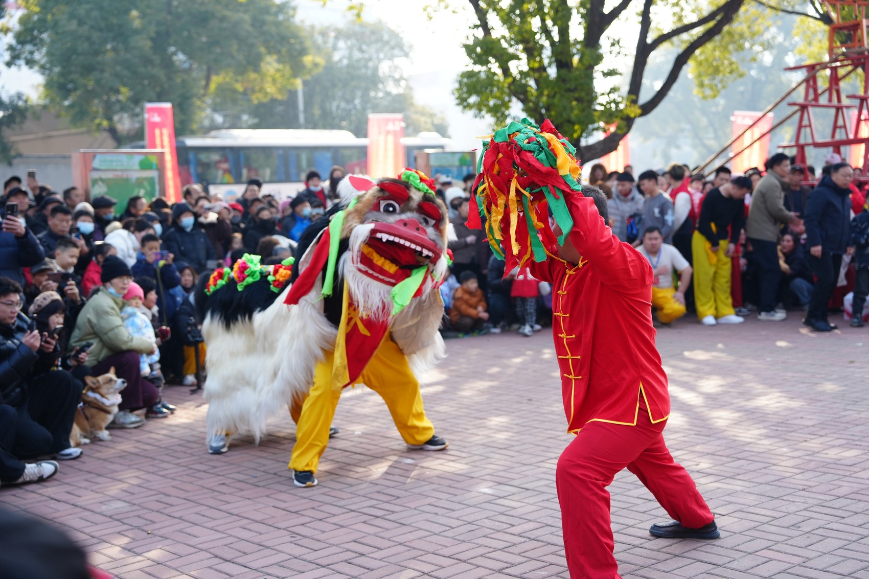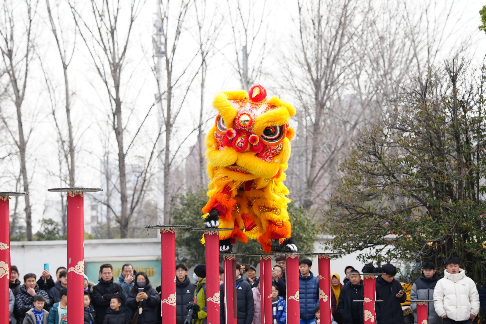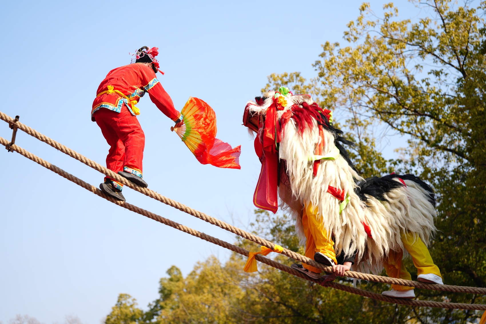 2月8日,河南平顶山市全民健身中心广场锣鼓喧天、人潮涌动。2026年河南省新春舞龙舞狮大赛的北狮非遗展演区被围得里三层外三层。随着鼓点愈加密集,只见表演者凌空一跃,脚踏双索,在离地数米的高空辗转腾挪、边舞边攀,每一步都牵动全场目光。台下,锣鼓声、喝彩声,夹杂着孩子们兴奋的欢呼声,汇成一片热浪,将气氛一次次推向高潮。这热闹鲜活的景象,正是河南民族民间民俗传统体育文化活动深入百姓生活的生动写照,也是体育与文化、传统与现代的完美融合。