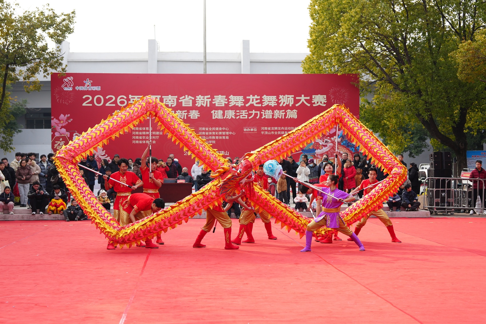 2026年河南省新春舞龙舞狮大赛活动现场。平顶山市教育体育局供图