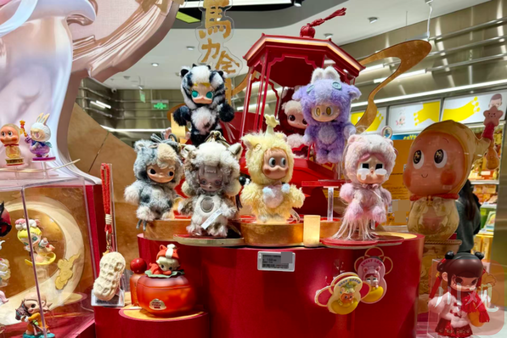 泡泡玛特成都万象城店内展陈的新春系列新品。