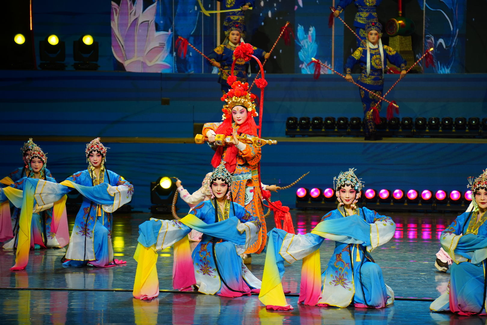 19时30分,晚会在开场歌舞《奋进南充幸福年》中拉开帷幕,让千年果州的文脉魅力在舞台上绽放。杂技《出征》中演员们在腾空、翻转与托举间尽显精湛技艺,一招一式皆透着坚韧与豪情,将奋进的力量展现得淋漓尽致;川腔新韵《戏苑流芳》,将传统川剧与现代演绎相融,高腔婉转、表演传神。