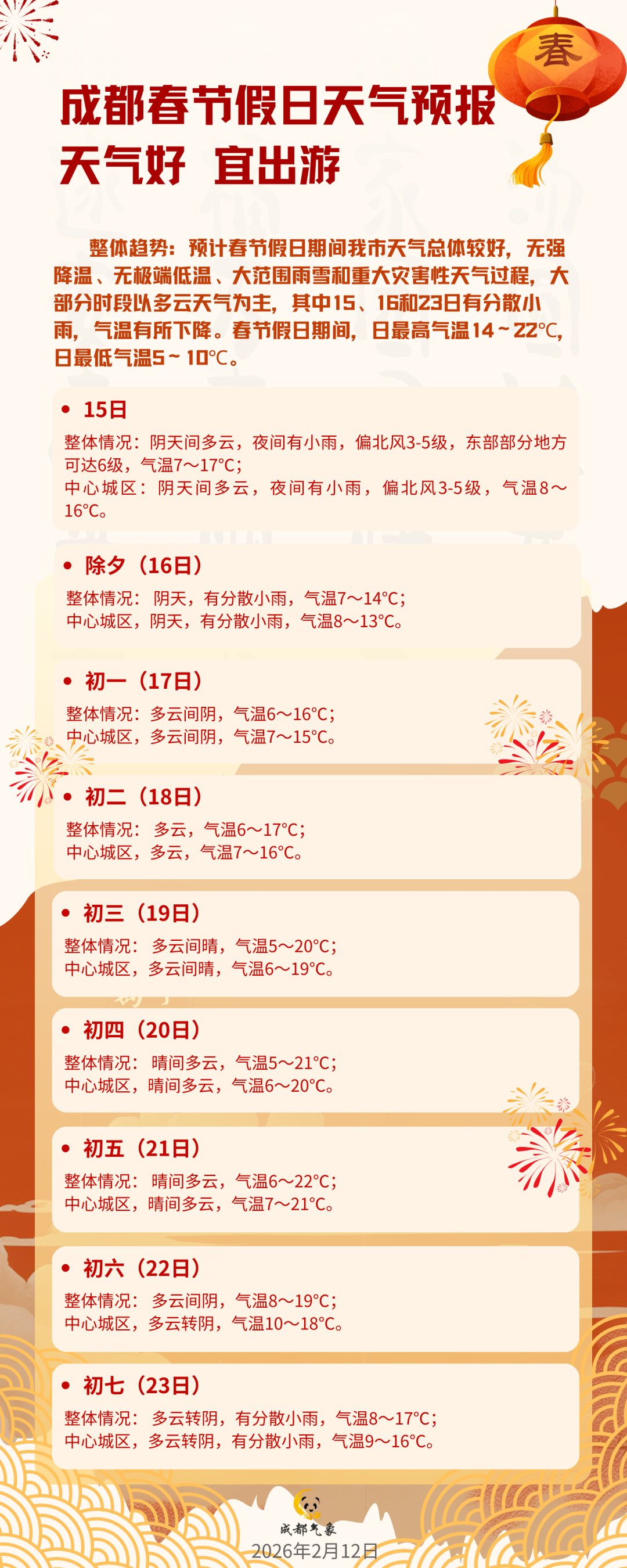 2026成都春节天气指南出炉