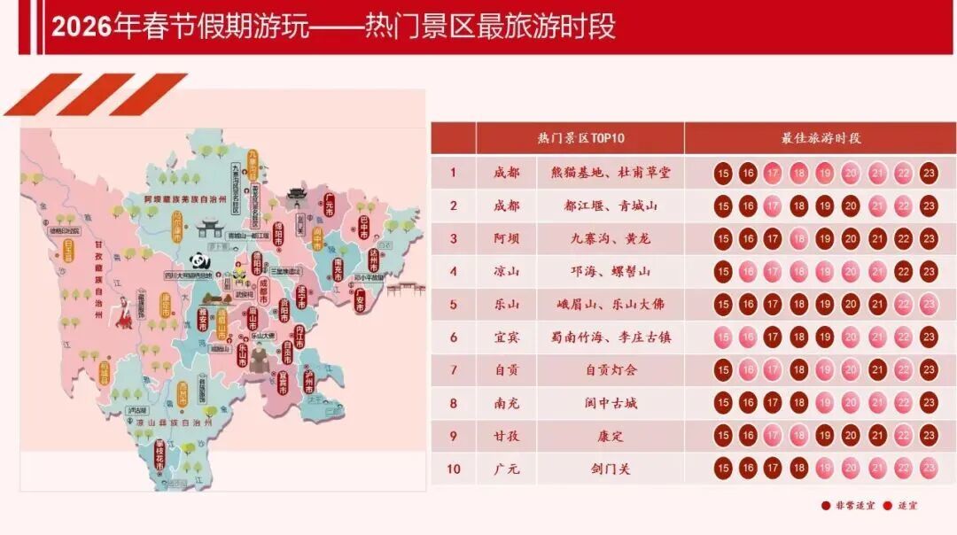 春节期间全省总体适宜出行,但川西高原和攀西地区大部森林草原火险气象等级较高,需注意防范。