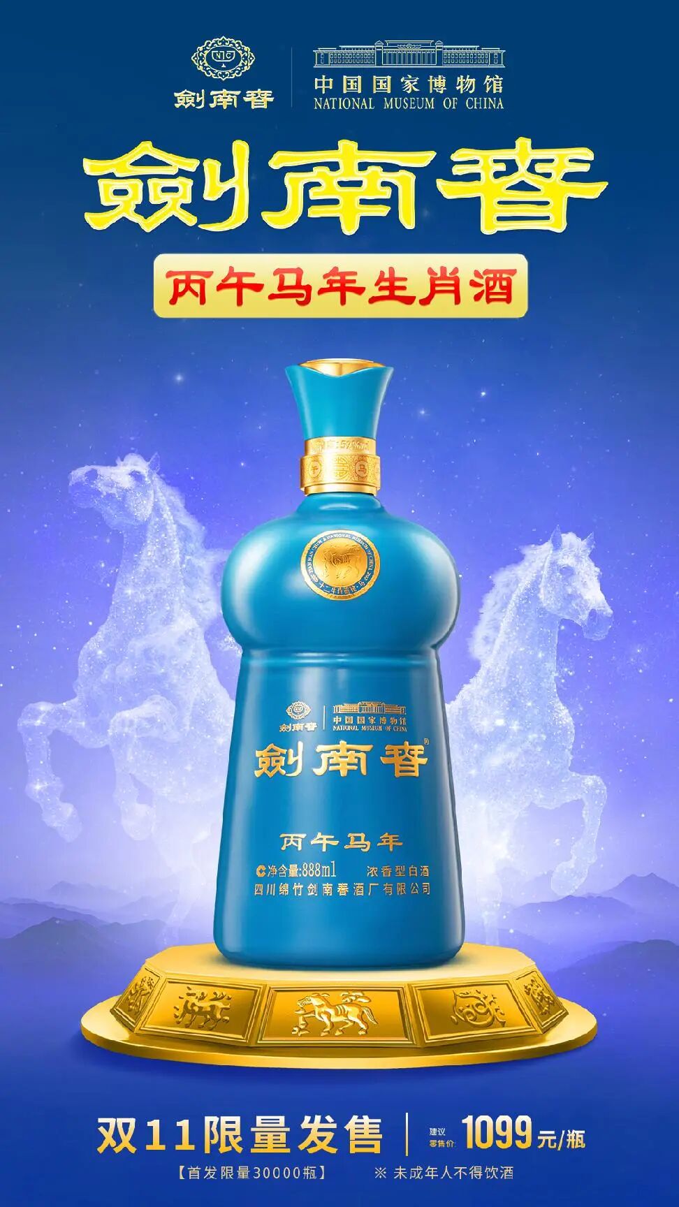 产品是营销的直接载体,剑南春马年生肖酒成为连接“家国同春”主题与春节市场的纽带之一。剑南春马年生肖纪念酒以1099元定价覆盖主流收藏与礼赠市场,与中国国家博物馆联名打造文化IP,以馆藏“隋·光正随人十二生肖铜镜”为设计灵感,将铜镜铭文“光正随人,长命宜新”的美好寓意融入产品。这款生肖酒在双11期间就取得了傲人“战绩”,成为马年生肖白酒市场中的力作。