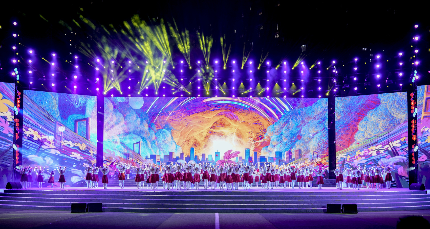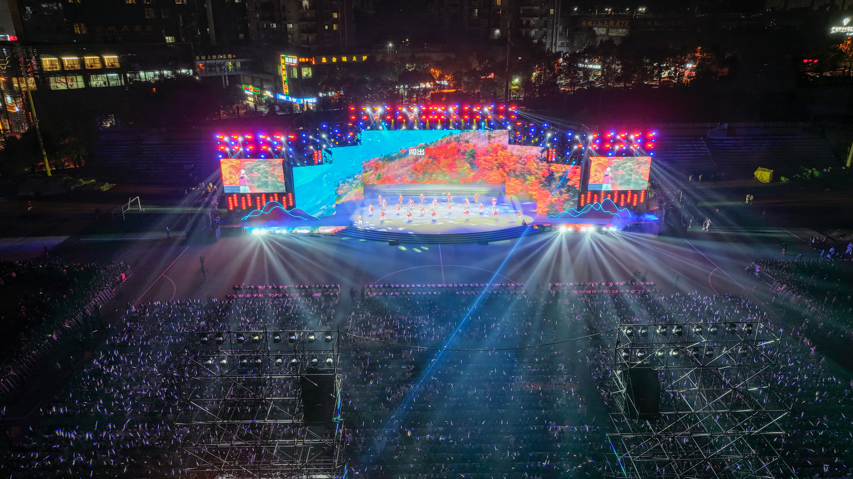本次活动聚焦“奋进新征程·聚力冲千亿”主题首次将舞台从室内搬至户外,让文化惠民服务直达群众身边,近5000个席位座无虚席,流动观众超万人,县城滨河路观看无人机表演的群众更绵延数里。