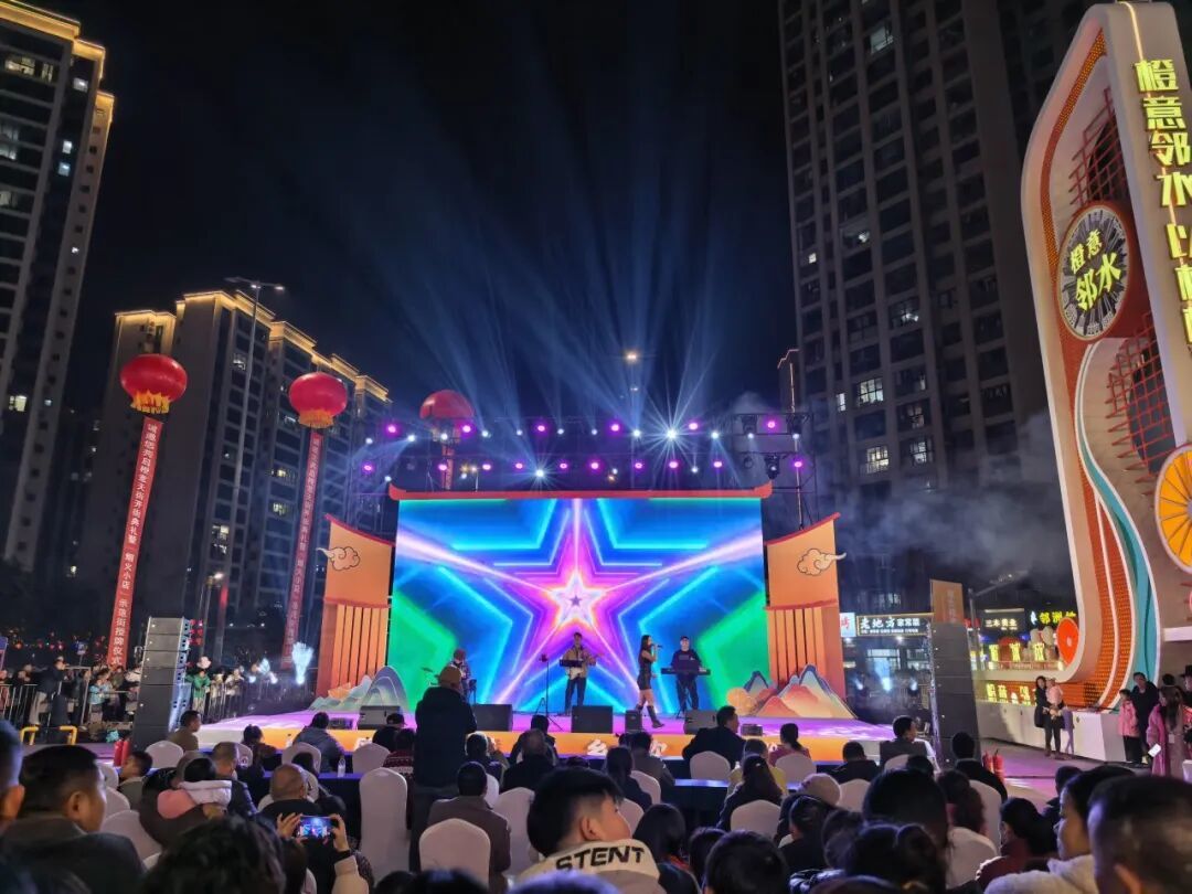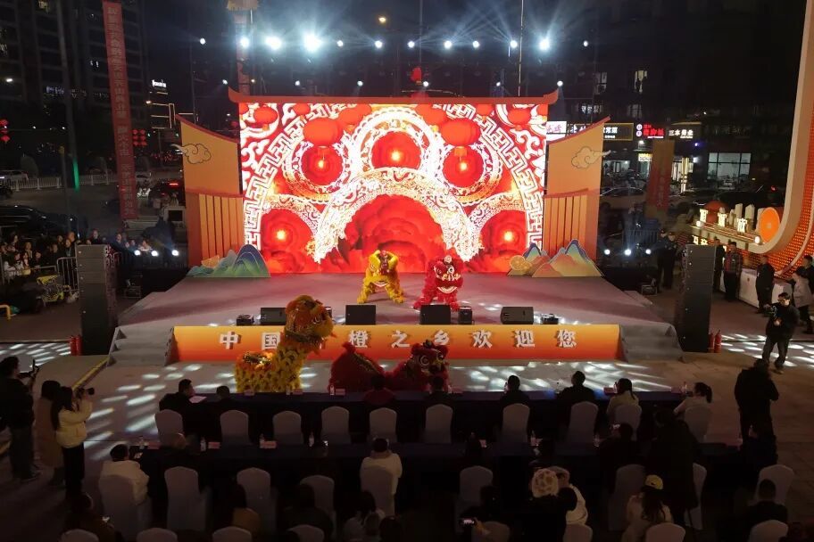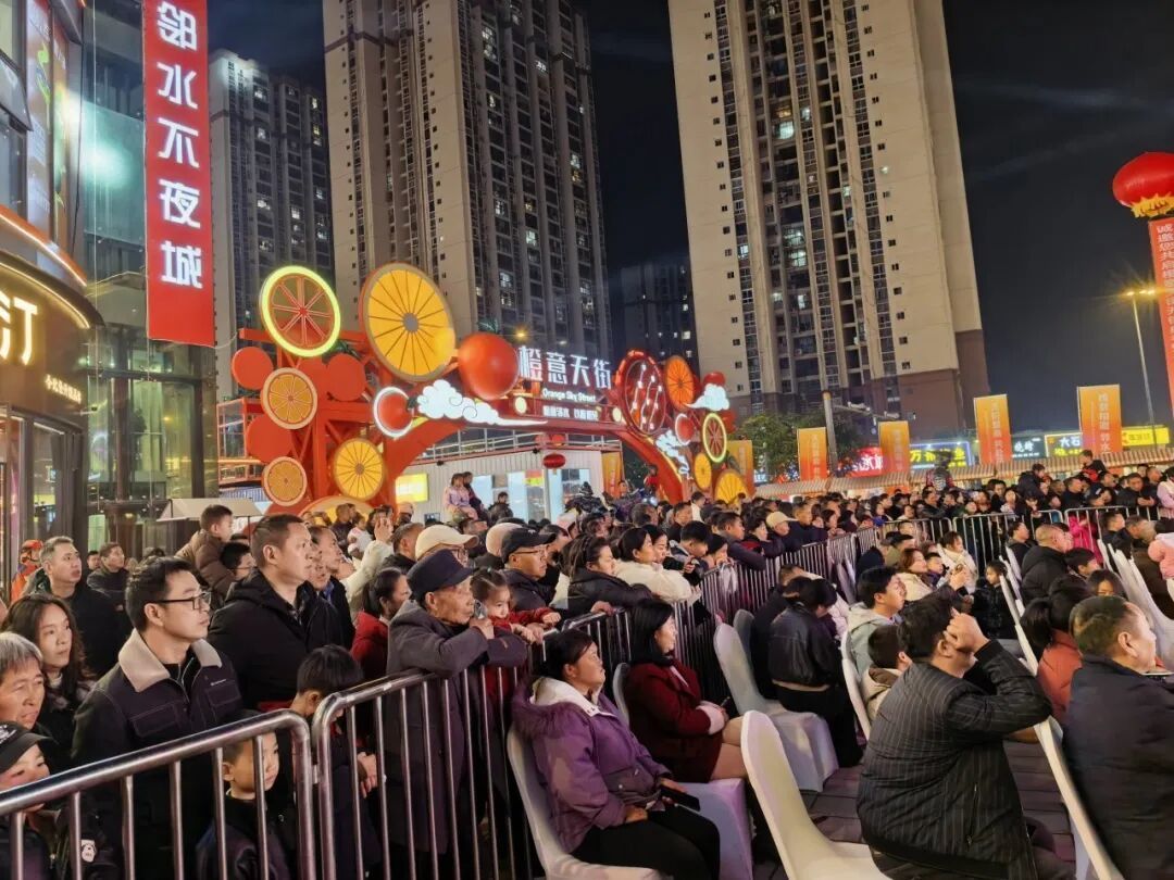 晚上七时许,现代生活馆灯火璀璨,橙意天街人流如织。开街典礼在激昂的鼓点中拉开帷幕——机器人舞蹈整齐划一,舞狮登高采青送上祝福;《醉美邻水》《橙意邻水》等节目轮番上演,将“中国脐橙之乡”底蕴与新春喜庆深度融合,赢得现场掌声如潮。