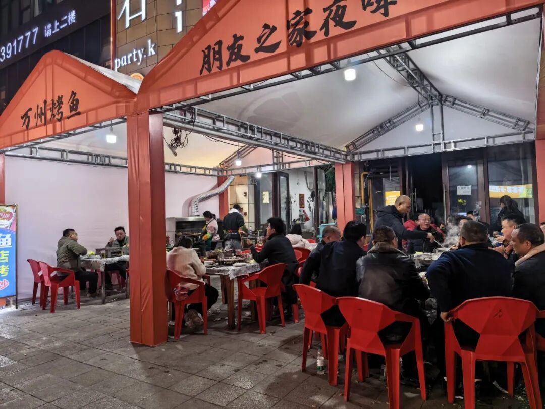 “一直盼着开街,没想到第一天就这么火爆。”橙意天街内的“万州烤鱼”店主颜芳笑得合不拢嘴。这家经营十年的老店,从黄桷树公园扎根八载,两年前迁至现代生活馆,开街当晚8张桌子座无虚席,翻台超过四轮。