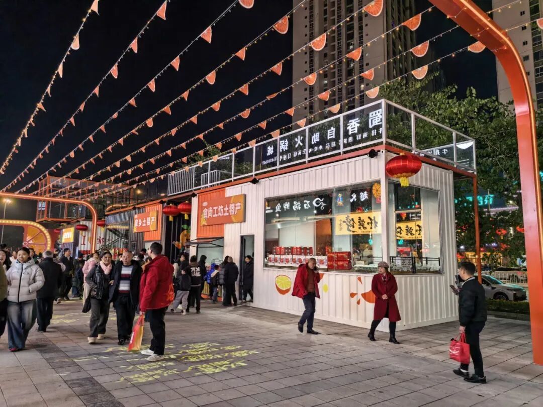 今晚,备受瞩目的“瑞马迎新·以橙相见”橙意天街暨“烟火小店”示范街开街系列活动在现代生活馆“橙意天街”启幕。作为邻水县2026年重点改造的特色商业街区,橙意天街以“橙”为媒、以节聚势,首个亮相夜便呈现出年味浓厚、人气集聚的沸腾景象。
