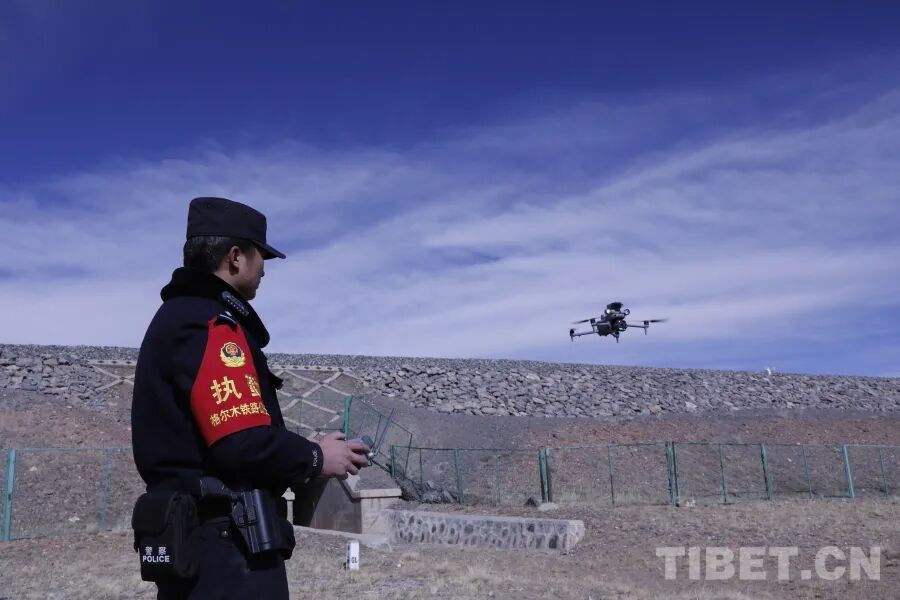 在极端环境下,守护不仅依靠脚步,更依托科技。近年来,沱沱河站派出所引入无人机技术,让生态守护拥有了“天空之眼”。民警们经过专业培训,熟练操作无人机,在开展线路巡查过程中,全面掌握周边生态环境的状态,及时联系“绿色江河”保护站工作人员,有针对性地开展各类生态保护工作。