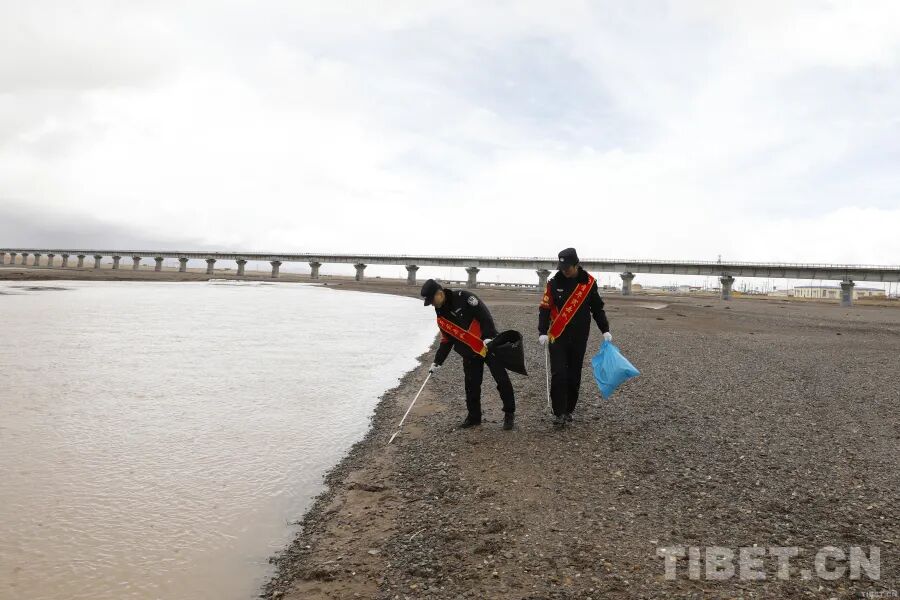 图为沱沱河站派出所民警开展生态环境保护活动