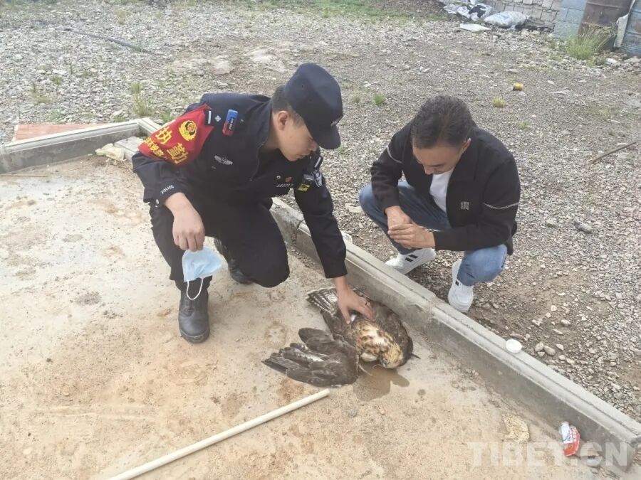 突然,一阵微弱的扑腾声引起了他们的注意——不远处的草丛中,一只灰褐色的猛禽蜷缩着,右翼沾染着血渍和沙土耷拉在身侧的石堆上,“它翅膀折了,还在流血,眼睛却倔得很,盯着我们。”王群回忆道。凭借派出所常年来开展野生动物保护工作的经验,田路昱认出这是国家二级保护野生动物——隼,它居于高原生态链的顶端,是维系脆弱生态平衡的“空中哨兵”。