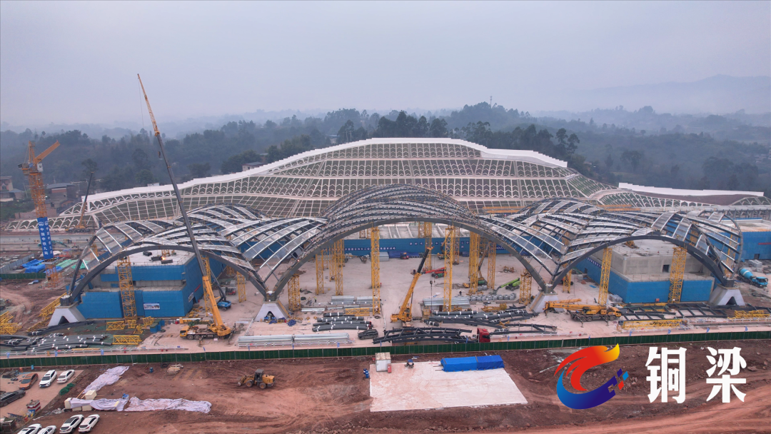 截至目前,铜梁站站房钢结构已完成90%,站房主体及砌筑工程已全部完成。1站台和2站台的站台雨棚均已完成约170米建设,按照施工进度,预计3月末将全面完成站房钢结构工程,为后续站房装修、设备安装及线路通车奠定基础。