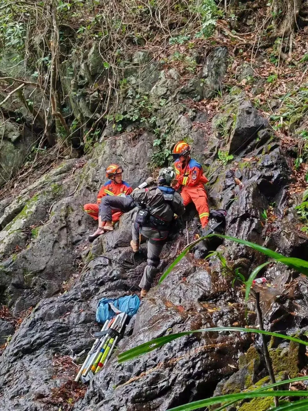 2、男子爬梧桐山不慎摔伤,消防紧急上山救援