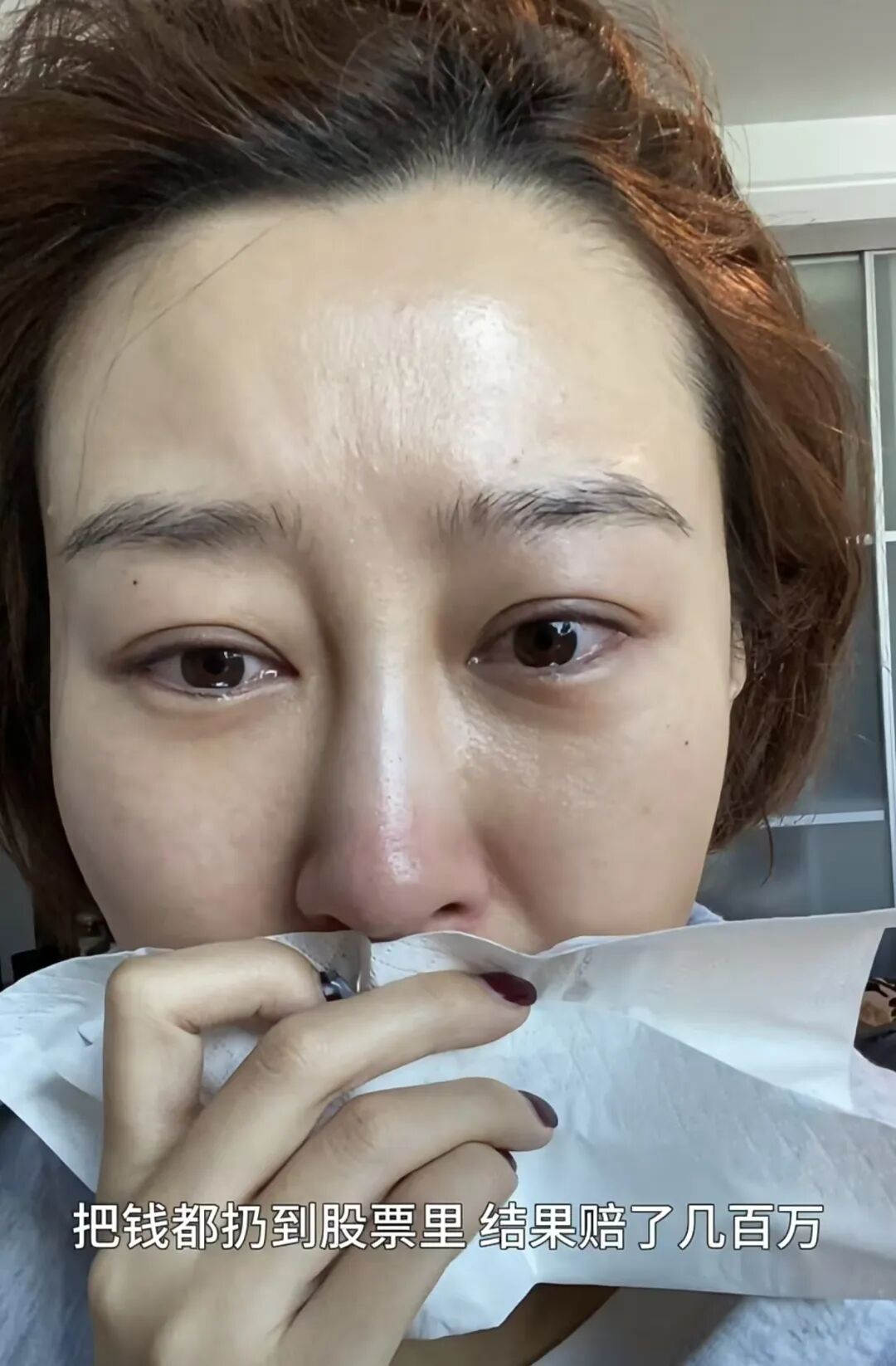 为了赚钱养活自己,作为“投资小白”的她,将所有的钱放入股市,最终亏损几百万。她还在视频中晒出了一张哭泣的照片。