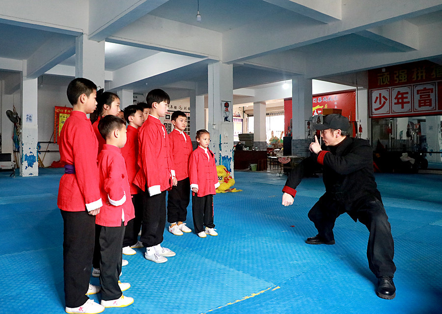 张鸿桀介绍主要在于两点:罗城麒麟灯的故事更完整,角色更多,还借鉴了川剧、舞狮等表演技艺;与武术结合更密切,动作更有难度和欣赏性。“我们这里是武馆。孩子们在这里主要学习武术,在此基础上练习麒麟灯和舞狮。既强身健体,又传承非遗文化。”