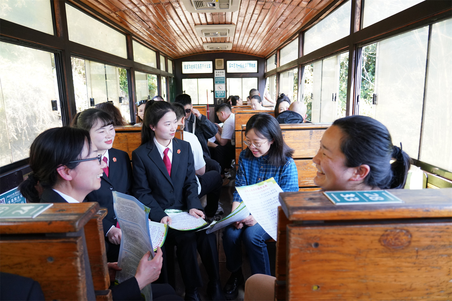2025年3月25日,石溪法庭干警在“嘉阳小火车”上宣传法治 周妤曦 摄