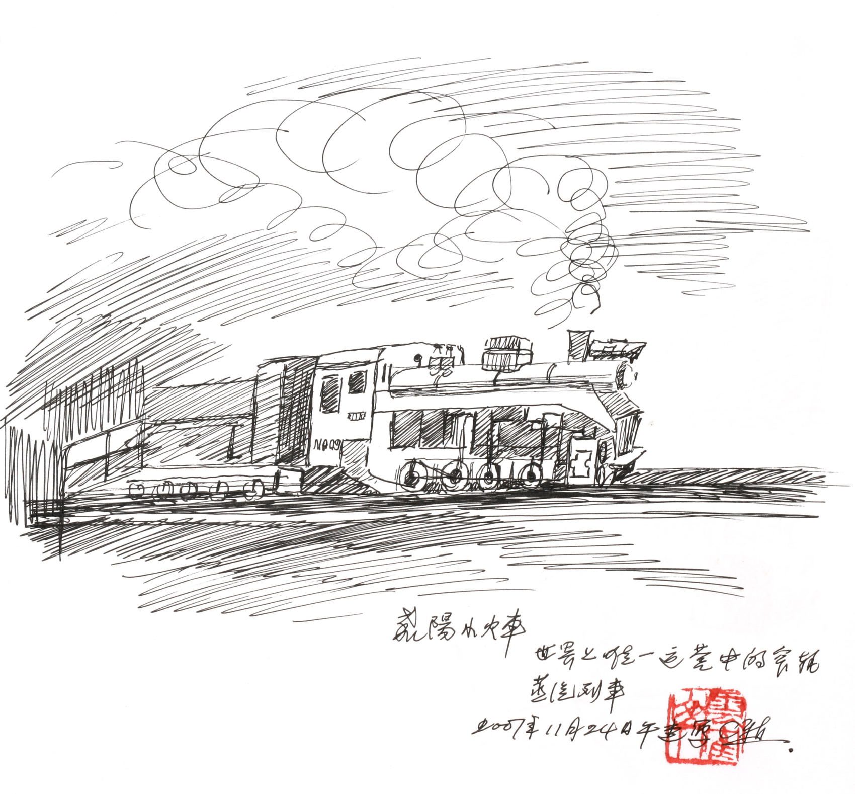 “嘉阳小火车”不仅承载风景,更汇聚了故事,连接着情感。我想起了那位乐山籍的书画家周云鹤先生。那是2007年的一个冬日,山间寒意料峭,年逾八旬的周先生也来到了这月台。与多数游客不同,他手中握着的不是手机或相机,而是一支灌满了墨水的速写钢笔,一个素白速写本。坐在铁道边的木凳上,他专注地凝视着眼前喘息着的“钢铁巨龙”。