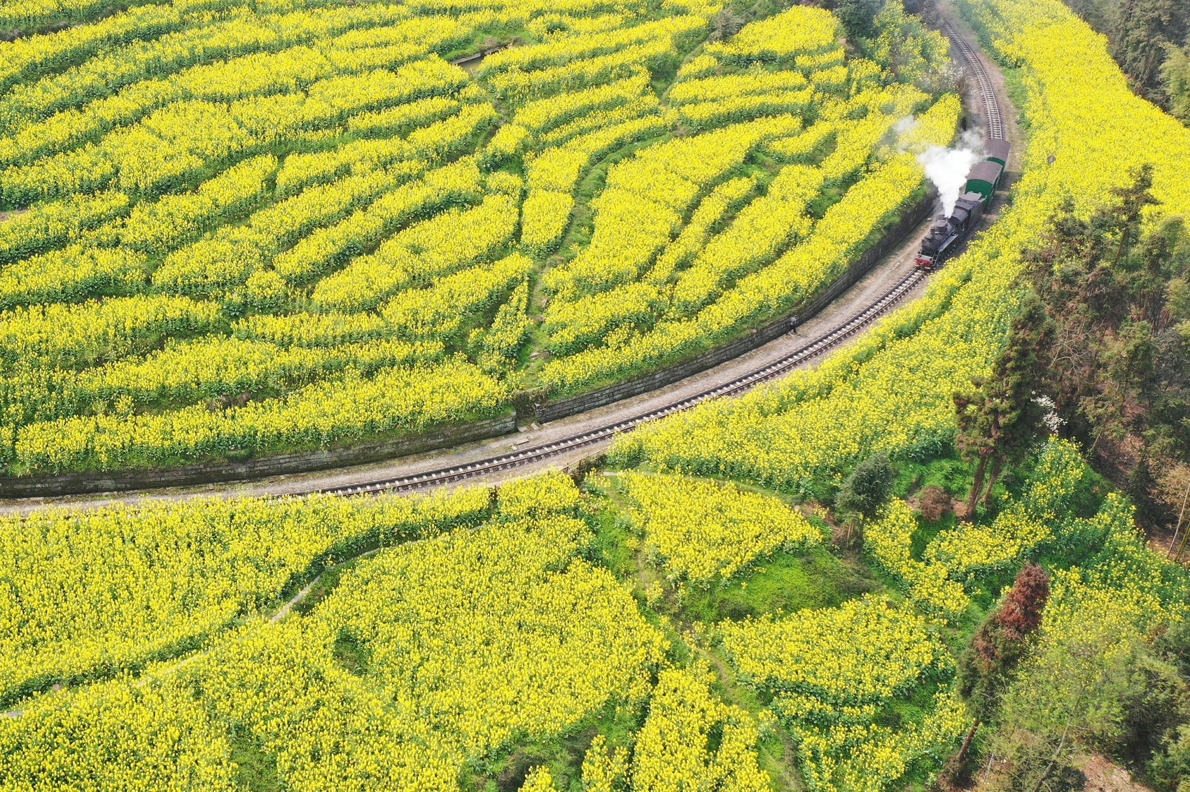 春天搭乘,是一场盛大的视觉盛宴。满眼是流溢的、饱胀得几乎要滴下来的绿。那不是单一的绿,而是由无数层次晕染开的:新竹的翠绿鲜嫩欲滴,远处梯田里秧苗的水绿泛着粼粼的光。这绿从山巅一直泼洒到谷底,浓得化不开,列车穿行其间,像一柄墨绿的梭子,织过一匹无边的、生机勃勃的锦缎。而最动人的,是那漫山遍野、肆意流淌的油菜花海。金黄的颜色泼辣而欢腾,与列车沉稳的墨绿形成热烈的对照。阳光好的时候,金光照进车厢,仿佛连空气都染上了甜香与暖意。