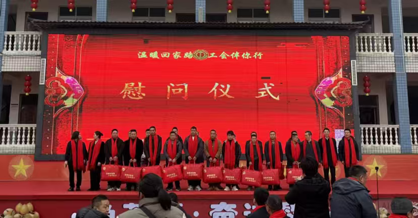 活动现场,四川省总工会保障部部长庞欣表示,工会是广大职工的“娘家”,服务好包括农民工在内的全体劳动者,是工会组织义不容辞的责任与承诺。集中慰问环节,与会领导将满载关怀的慰问品逐一送到农民工代表手中,亲切的叮嘱、暖心的交流,让在场人员倍感温情。
