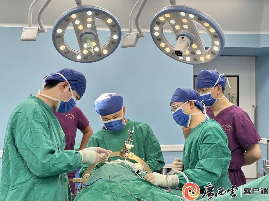 接诊后,中山大学附属第一医院广西医院副院长杨超教授团队,为她进行了全面检查和评估,确认其符合脑起搏器手术指征。2月3日,团队成功为该患者植入搭载脑机接口技术的可充电、可感知闭环脑起搏器,手术电极植入精准,术后无并发症。