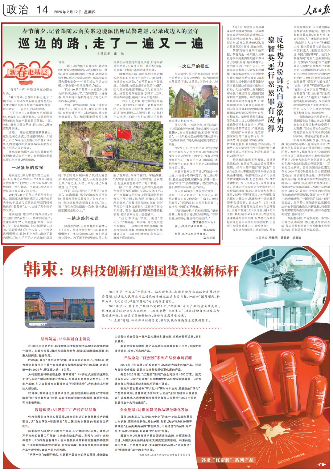 “我们做的事并不轰轰烈烈。”望着界碑上鲜红的字迹,陈力轻声说,“守好边疆、护好民,就是我们的信仰。”