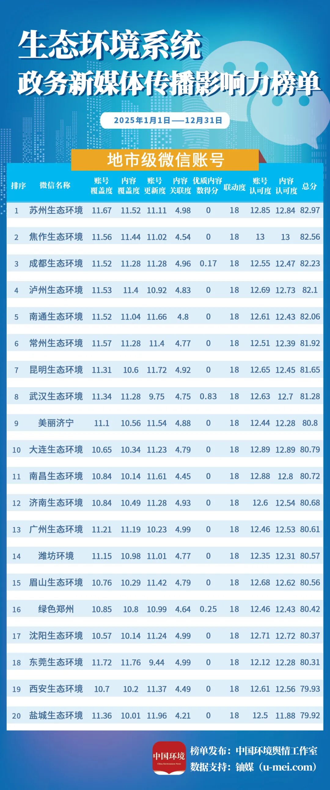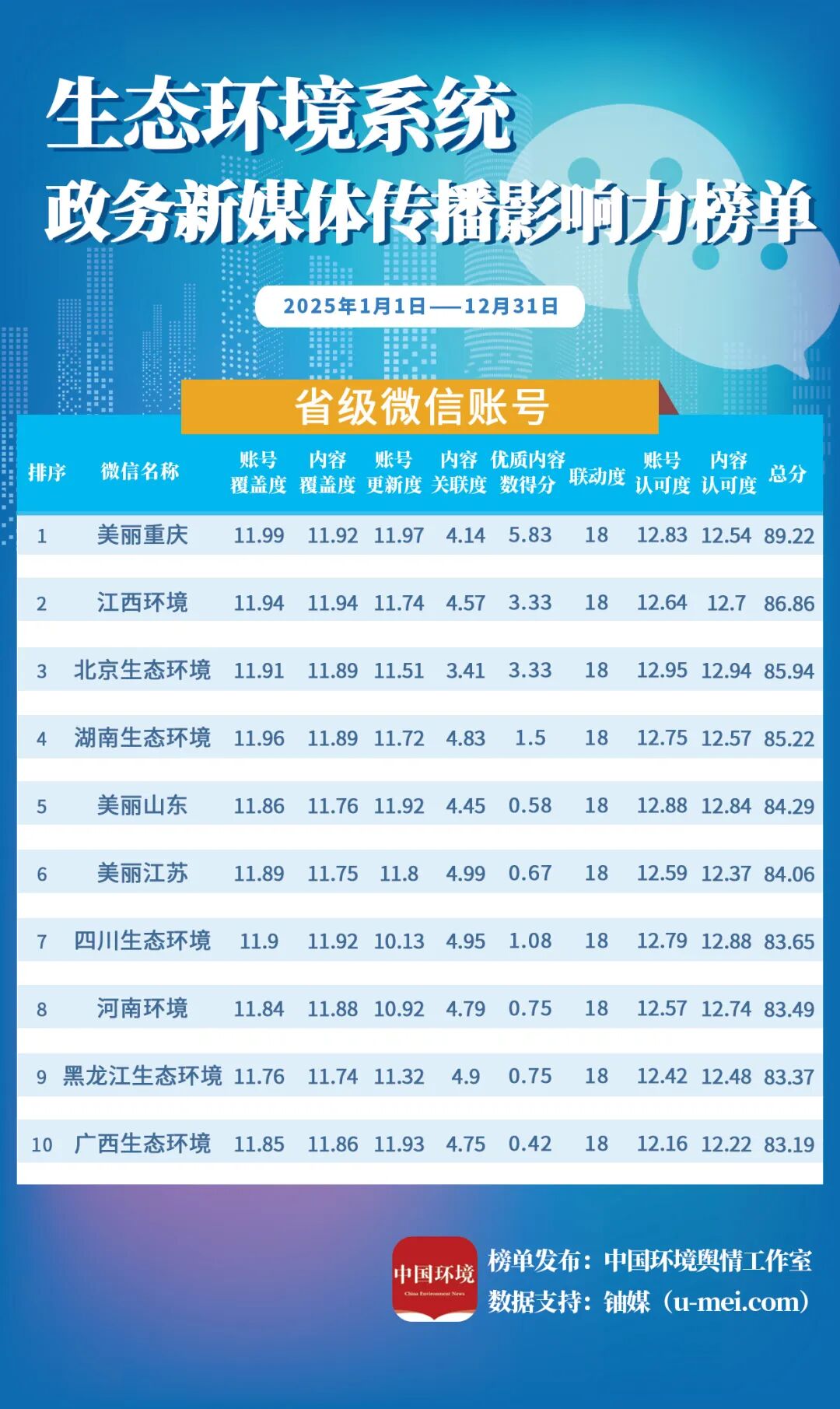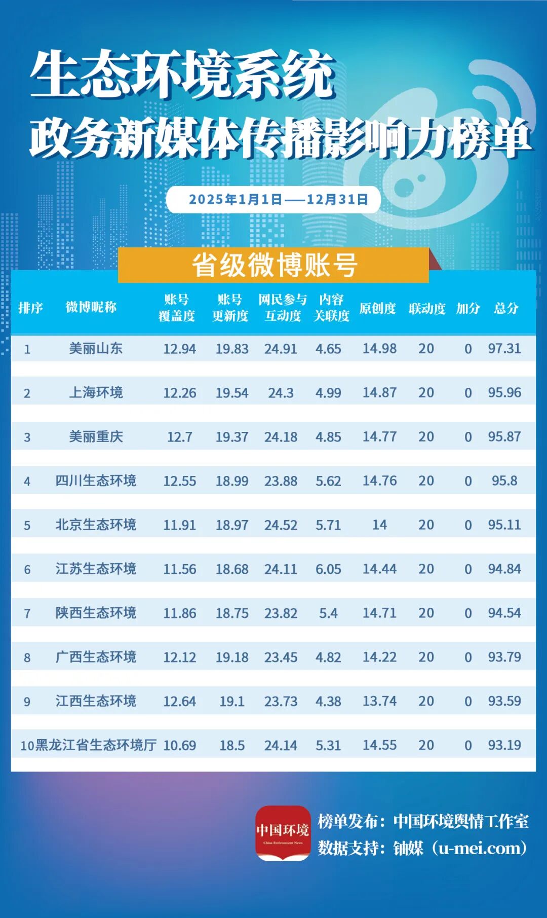 2025年生态环境政务新媒体“期末考”放榜啦!哪些账号成了“顶流”?哪些爆款内容让你忍不住点赞转发?快来一起围观这份热气腾腾的“战绩单”!