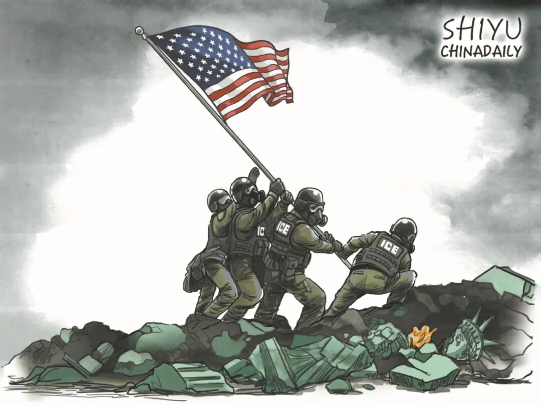 ICE的种种暴行是对美式民主的甚大讽刺。(来源:中国日报 石宇 英文《中国日报》2026年2月12日8版)