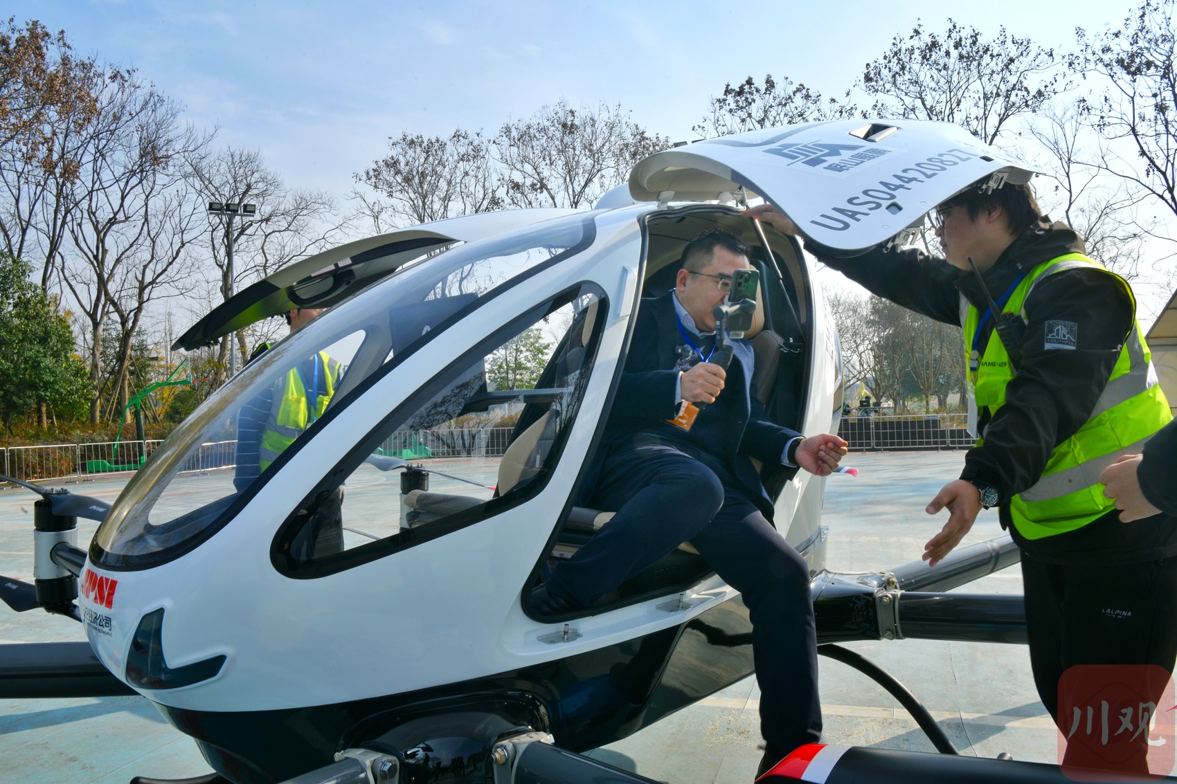 四川省低空经济产业发展有限公司(简称“省低空经济公司”)是飞行活动的主办方,公司董事长⻰志宇作为首飞乘客上机测试。“通过亲⾝实践,直观验证eVTOL的安全性、稳定性,以及它在城市空域运⾏的适配性。”龙志宇表示,这不仅是对航空器技术的检验,更是对公司运营保障能⼒的检验。