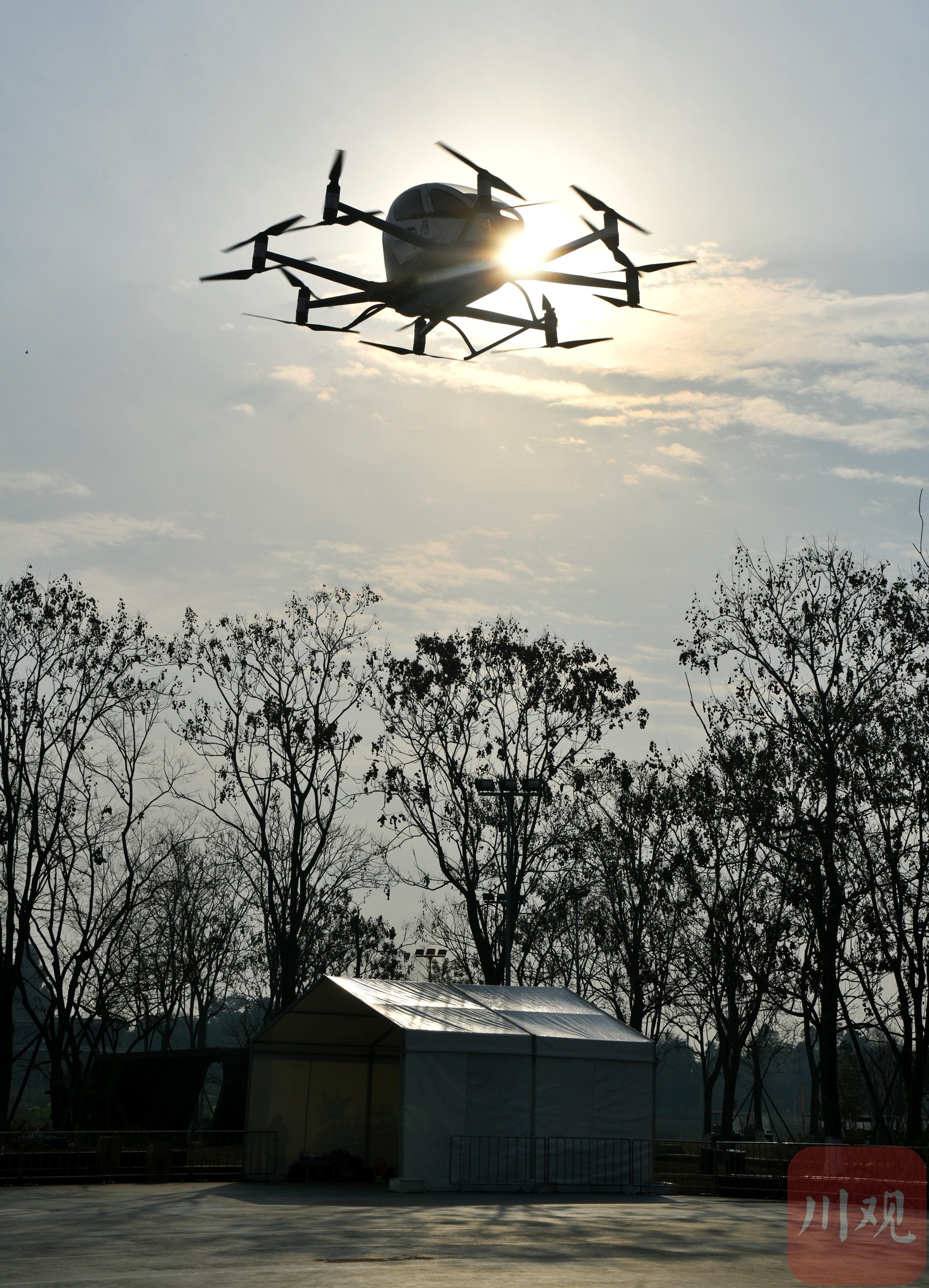 2月13日,成都市锦江区白鹭湾,一架eVTOL(电动垂直起降飞行器)缓缓升起,在空中飞行约5分钟,完成了一次单点起飞垂直起降演示,这也是成都主城区的首次低空载人验证飞行。