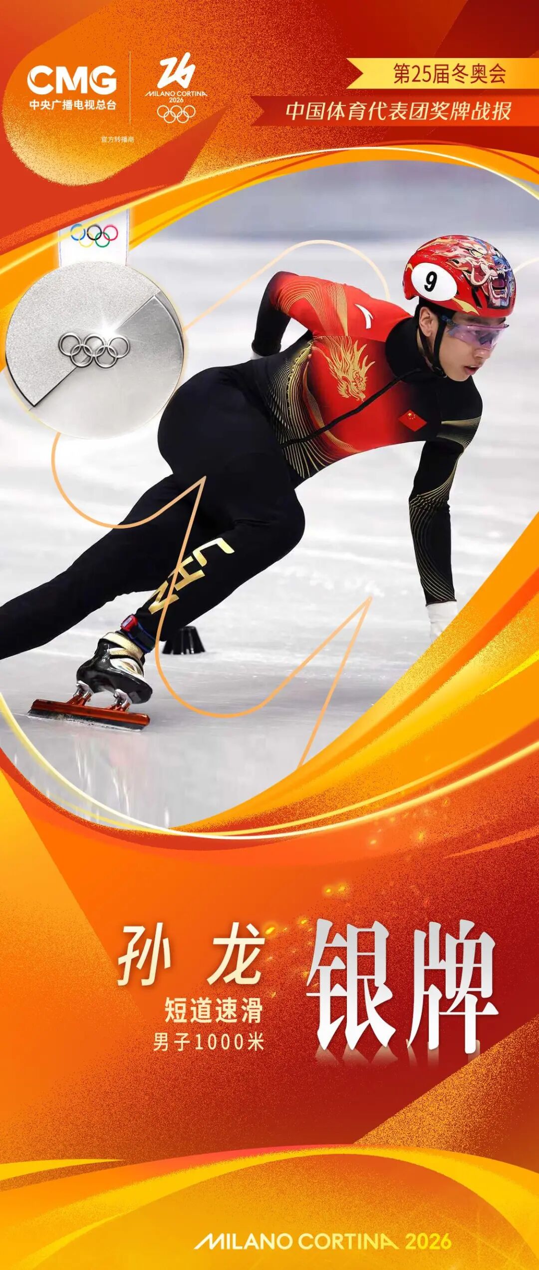 北京时间2月13日,米兰-科尔蒂纳冬奥会短道速滑男子1000米A组决赛,中国选手孙龙以1分24秒565的成绩获得亚军。期间,孙龙从第4位一路冲到银牌!
