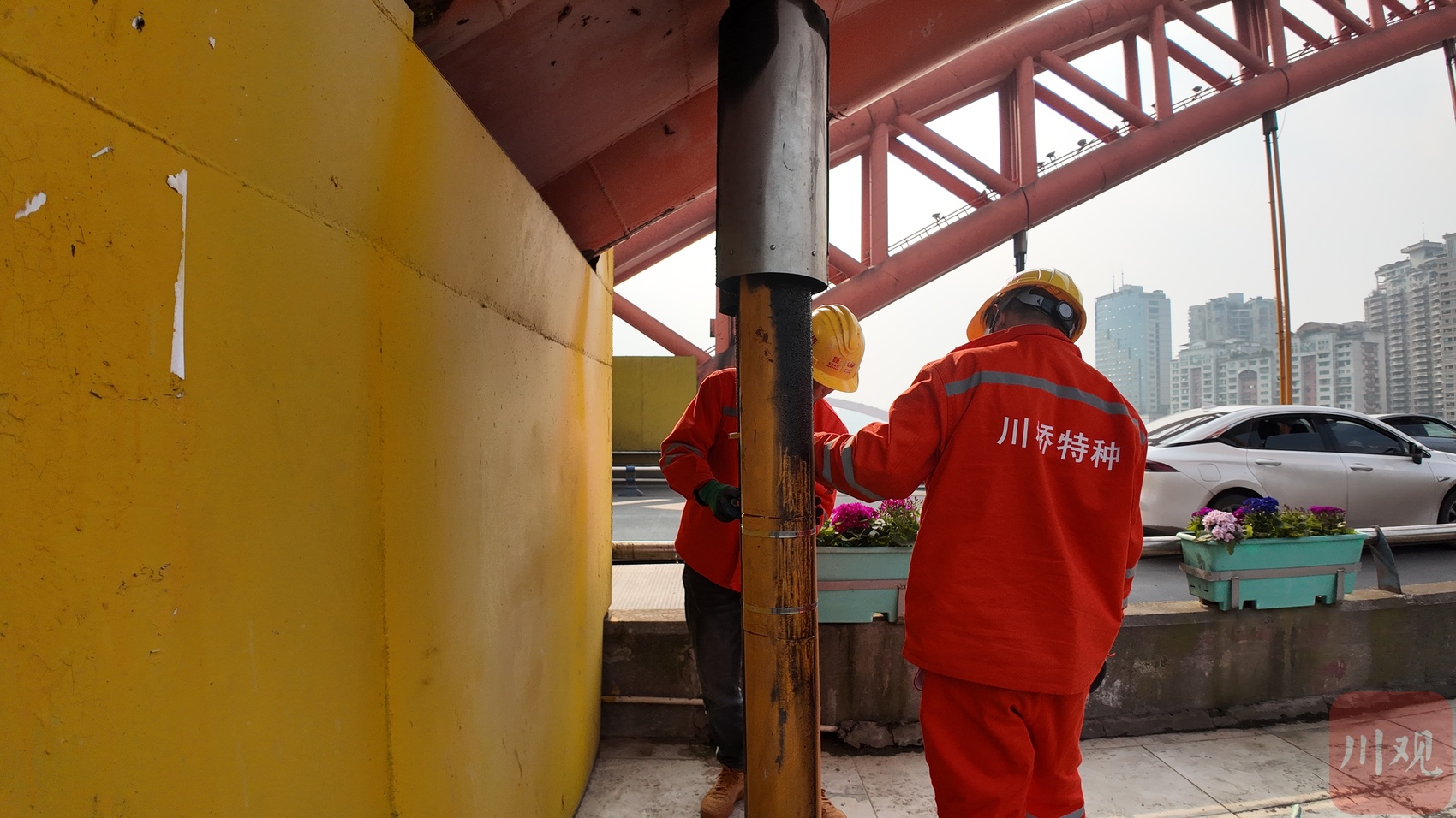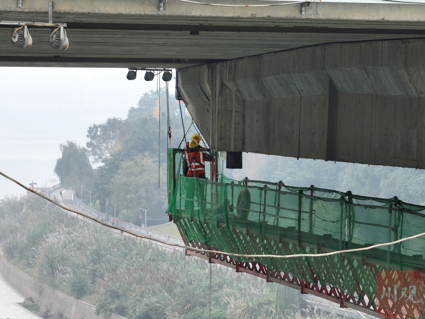 近日,宜宾金沙江戎州大桥下,川观新闻现场看到,几十米高空之上,钢桁之间,几名“桥梁医生”正一边沿桥梁拱肋向上移动,一边拿着检测设备,对桥梁关键部位逐一排查。自1月底起,四川路桥桥梁公司特种工程分公司宜宾桥隧管养中心组织专业力量对城区重点桥梁、隧道及主干道路开展拉网式排查。