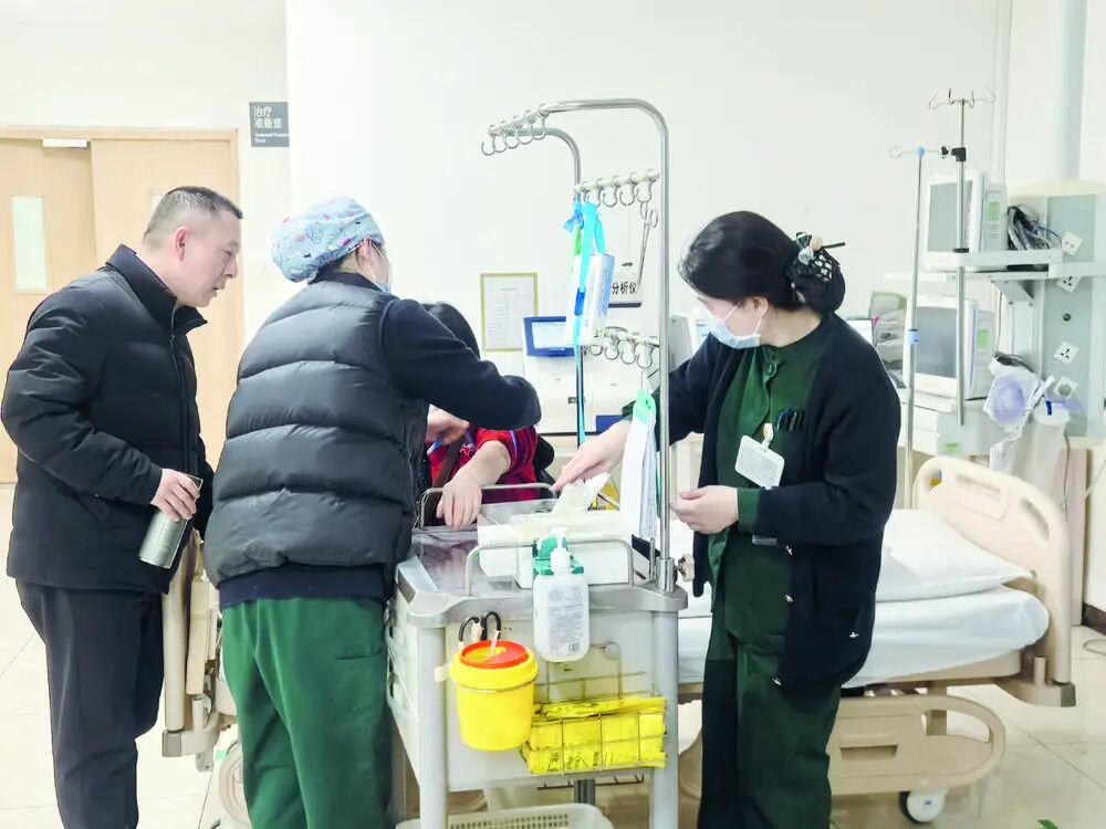 市人民医院建华院区急诊医学科医务人员为患者进行检查。