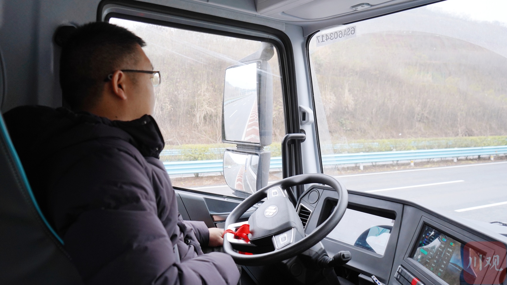 2月12日,成宜高速测试路段,两辆银灰色新能源重卡正列队平稳行驶。驾驶座上,驾驶员并未操控方向盘,只见方向盘随弯道和车流自动微调——这不是科幻场景,而是自动驾驶新能源卡车城际干线物流项目的实景测试。“项目于去年启动,目前在成宜高速开展实车测试,累计测试里程已达60万公里,覆盖空载、重载、昼夜等全工况场景。”蜀道集团成宜公司龙马管理中心副主任曹钟原介绍。